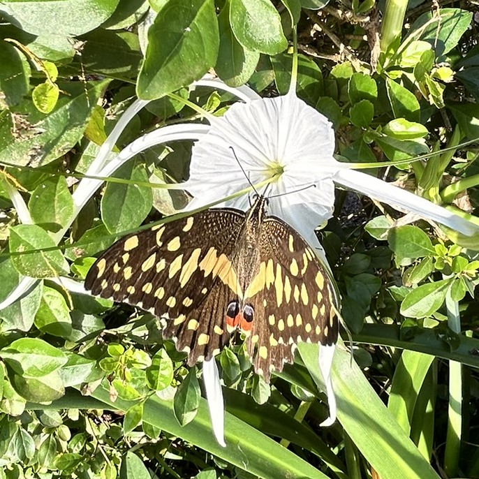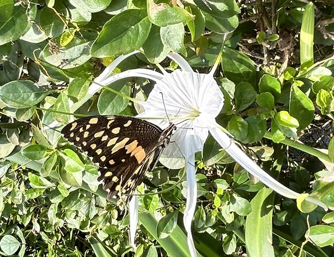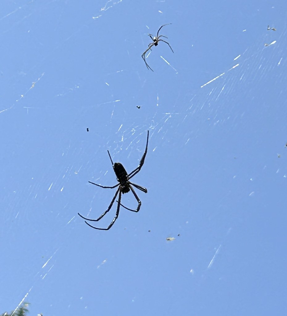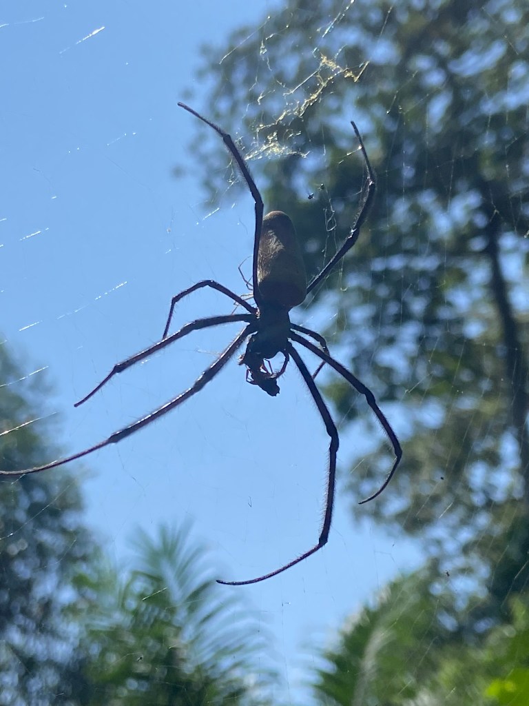 It was interesting to see so many spiders high up in the trees and across the bushes