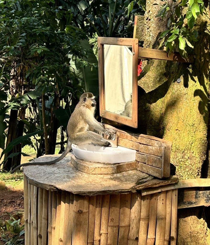 With Entebbe being high up again the air was cool and clear with only a few mosquitoes so we had a relaxing evening watching a movie outside and laughing at this little chap who was curious to know who was behind that mirror!