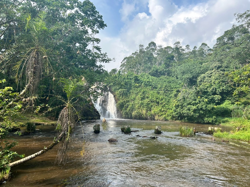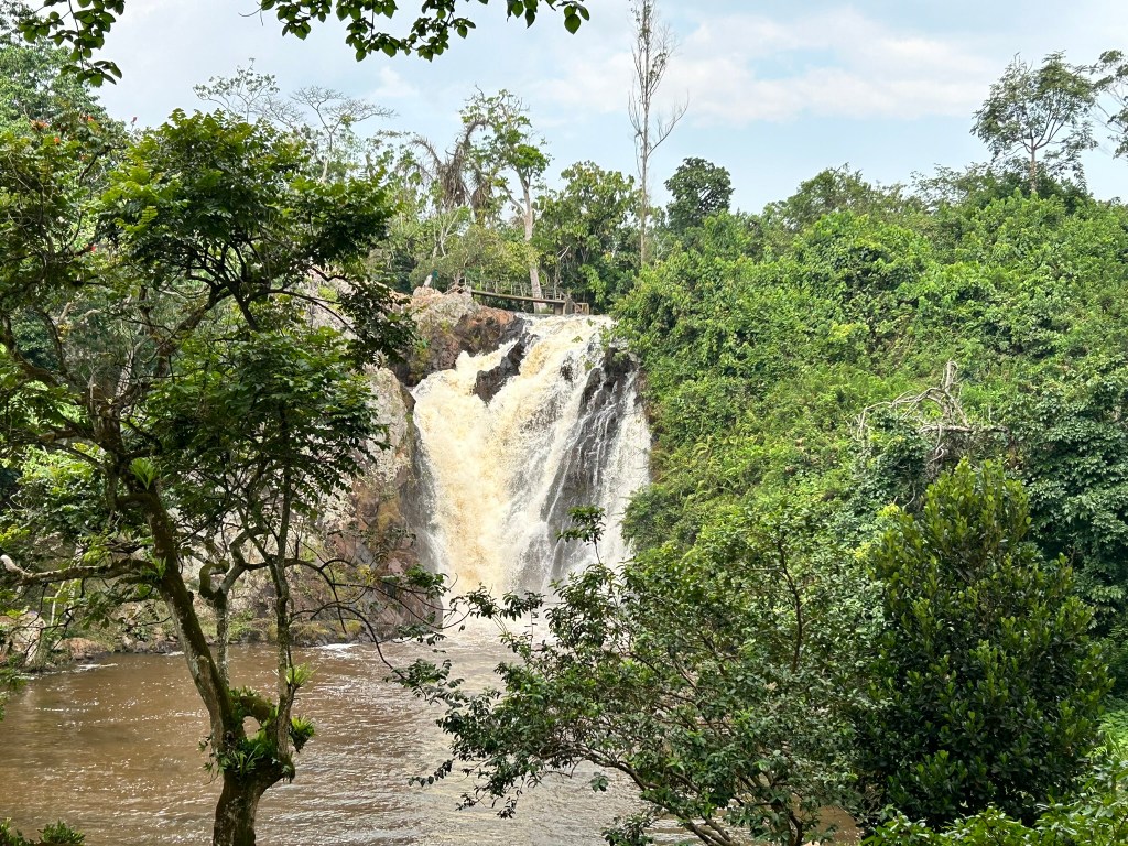 After another fabulous breakfast the next morning and a top up of our food stores at a more reasonably priced Carrefour in a posh mall, we left Entebbe and headed further west to the Ssezibwa waterfalls.