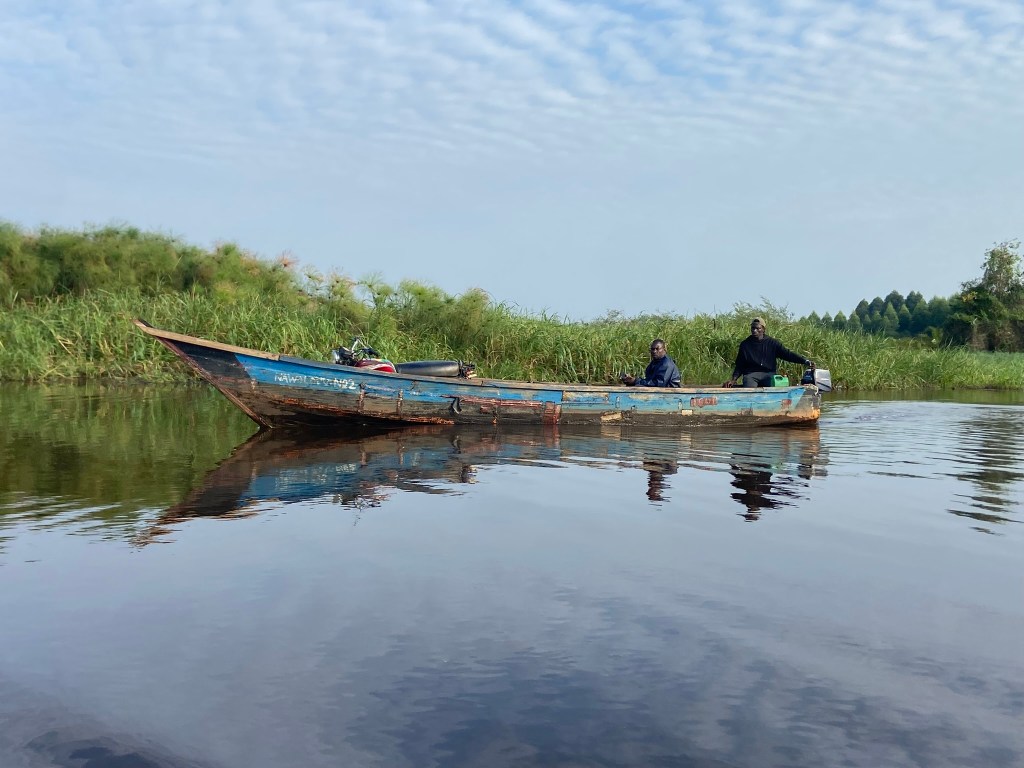 James drove Henry onto the ferry but only one person was allowed to stay with each vehicle so I had to queue with the other foot passengers before boarding. Whilst I was in the queue, talking with the only other European visitor, a Ugandan gentleman came up to comment on Henry and start a conversation with me. He introduced himself as Carlos and was clearly very intelligent and well educated. I was enjoying our conversation when he suddenly disappeared – I was a little disappointed until I boarded the ferry and found him and James sitting together putting the world to rights!