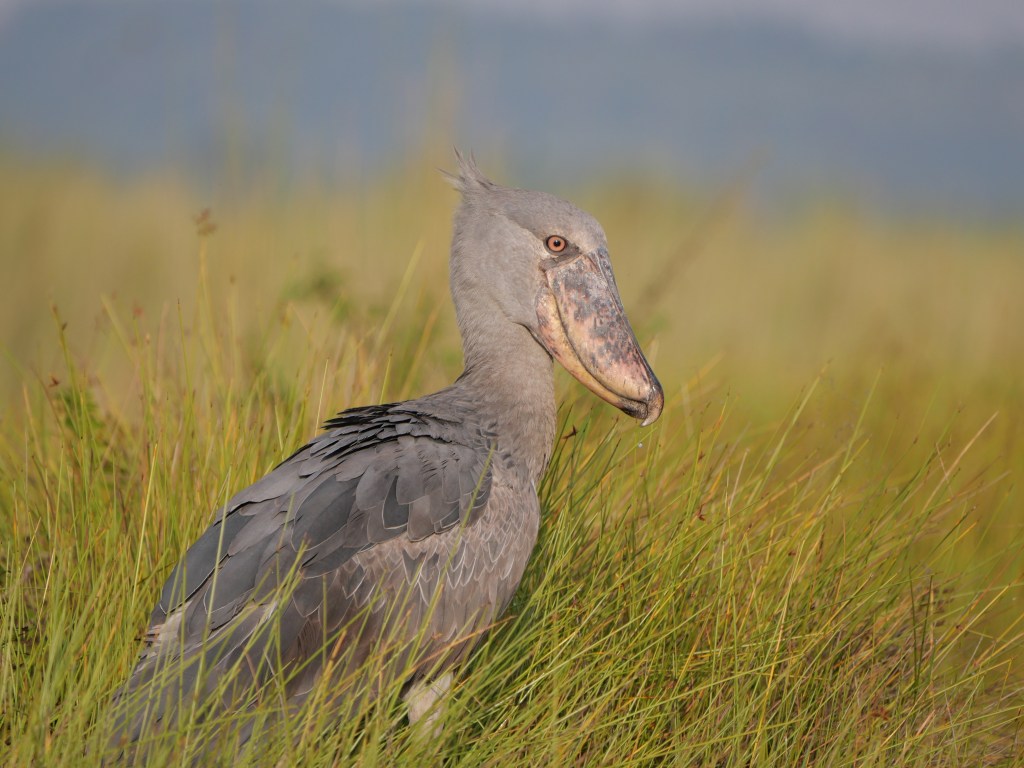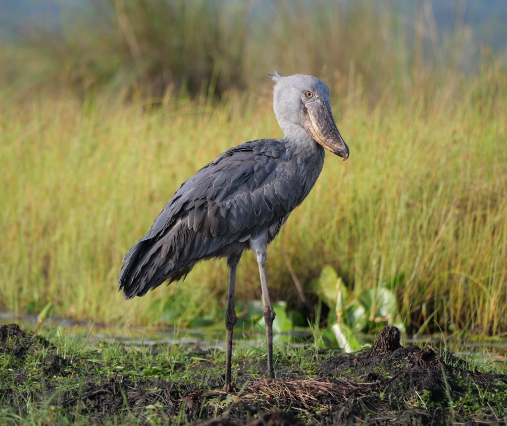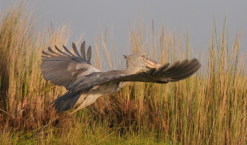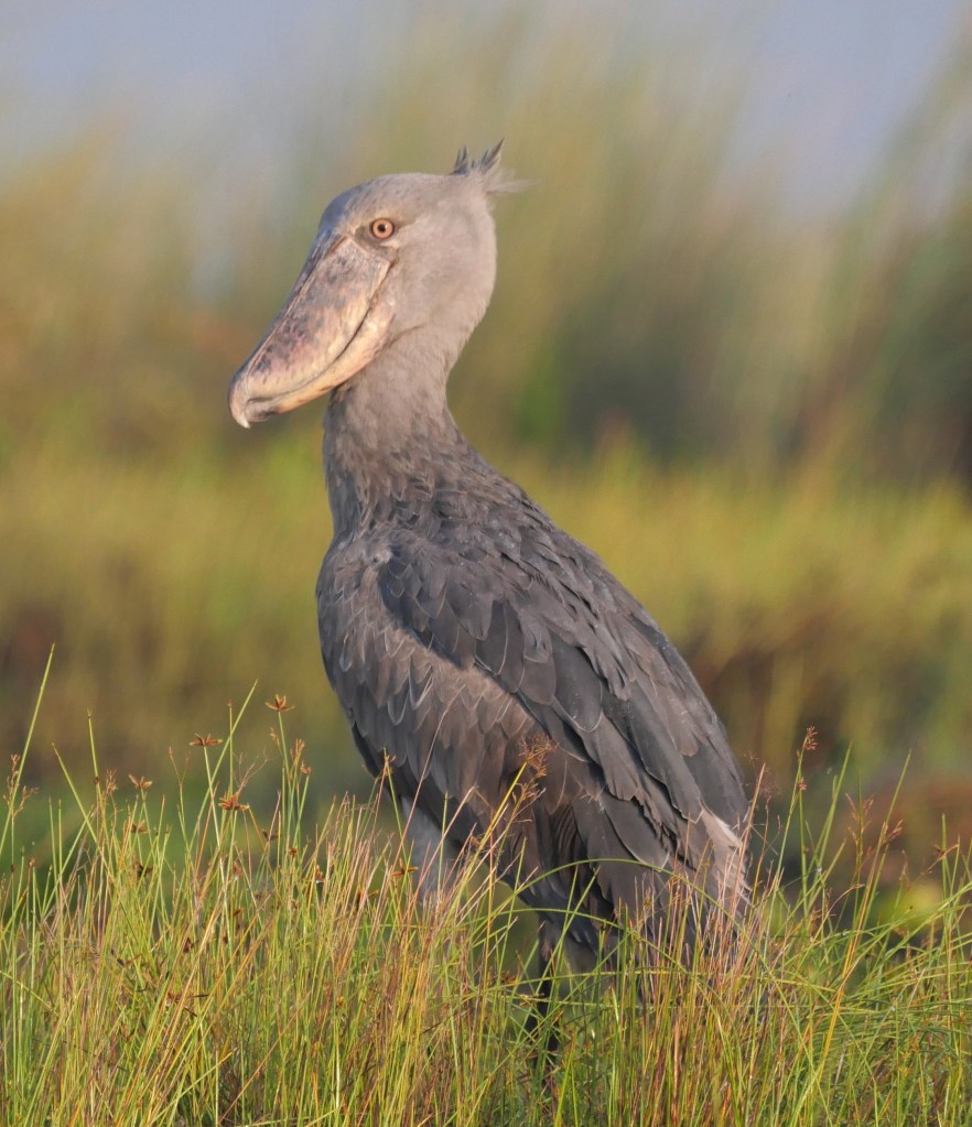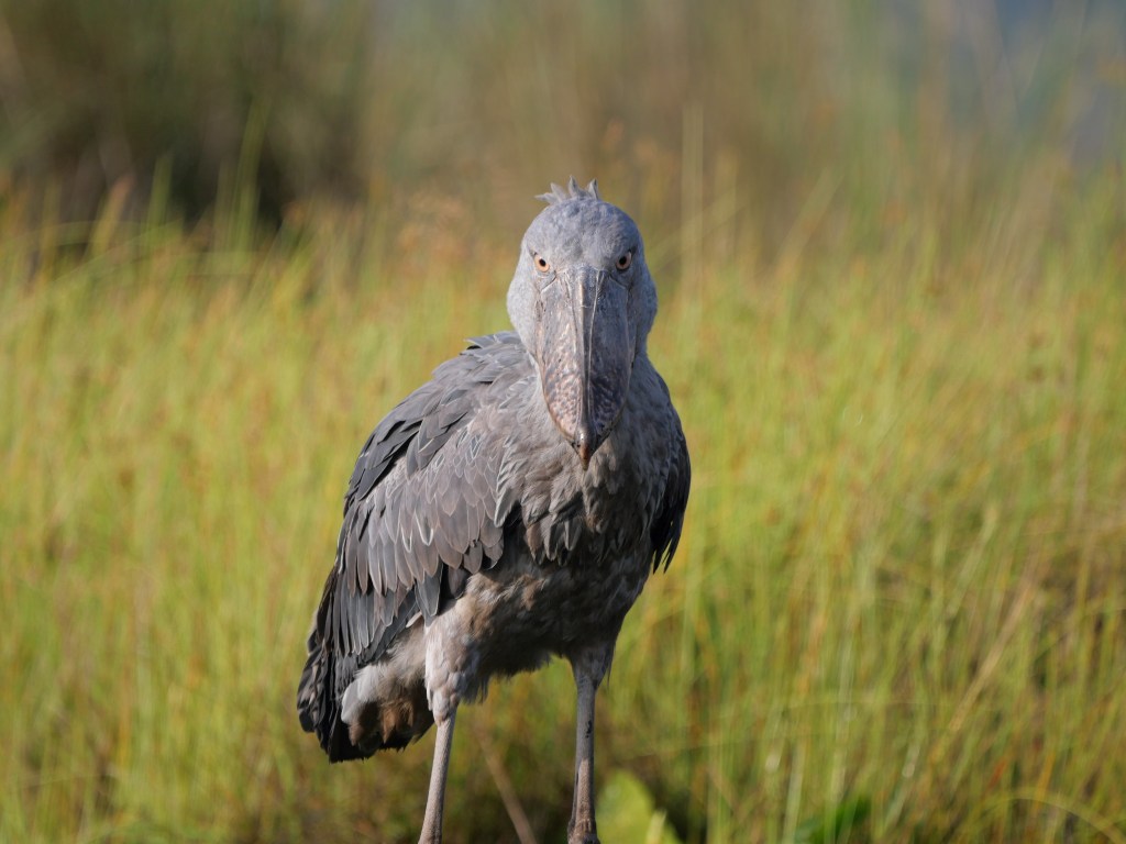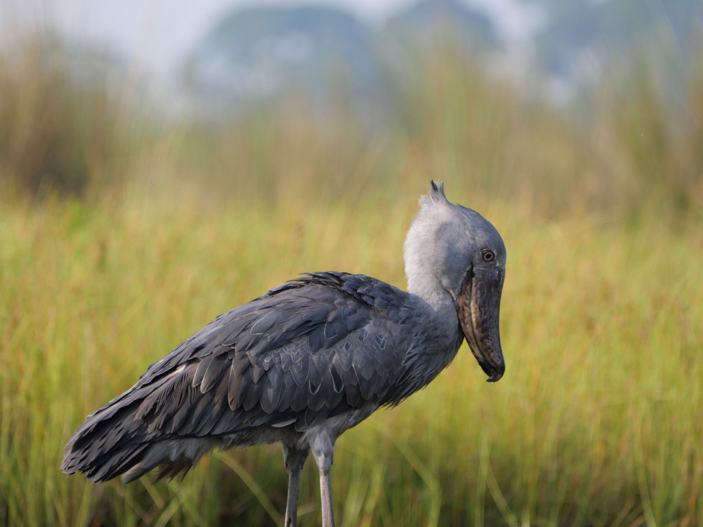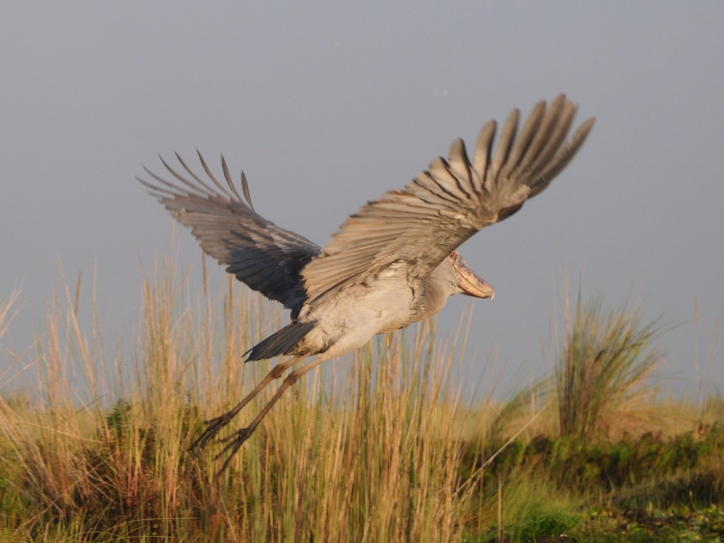 Some of you may remember me talking about Shoebills when we were in Zambia. We had the option of seeing them at the Bengweulu Swamps, however when we arrived we discovered that there was only one individual there and it would have been a 10 hour hike carrying a canoe on our backs with limited chance of finding it at all. At that point we decided to try and see Shoebills somewhere else and this was now our chance – there were over a dozen here and we would be searching for them whilst sitting in a canoe rather than carrying one!