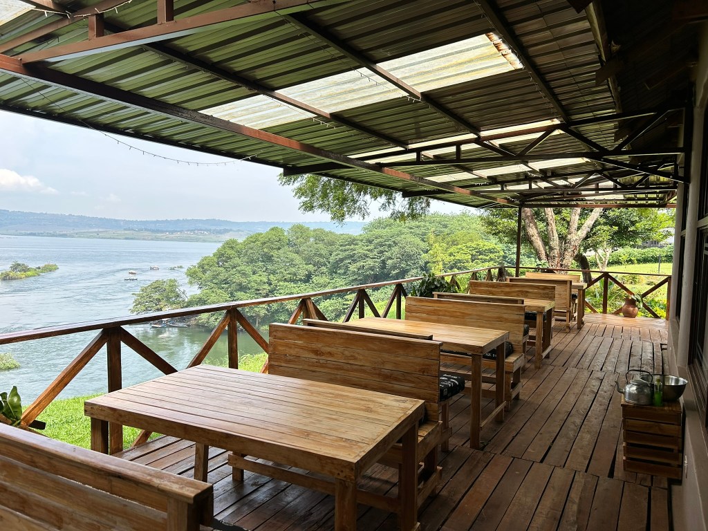 The next day we had organised a boat trip to the Source of the Nile for 10am but when we woke up it was pouring down with rain. The guide was happy to delay the start until the weather cleared so we spent the morning in the restaurant watching the rain splashing down around us