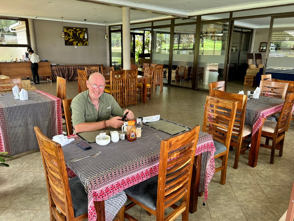 The only other guest was an English biologist who lived in Maine. He was taking a break from his research to spend a few days bird watching. The three of us chatted for a while until Smith joined us and starting telling us about buying land in Uganda, the difficulties of installing solar power and how they were saving for improvements to the campsite and guest house. He went on to talk about inheritance in Kenya – apparently it is traditional for parents to leave land to their sons and houses to their daughters but more recently parents will buy separate land and give some to the girls and some to the boys – always careful to keep the two apart. Domestic bliss does not seem to reign in Kenyan families!
