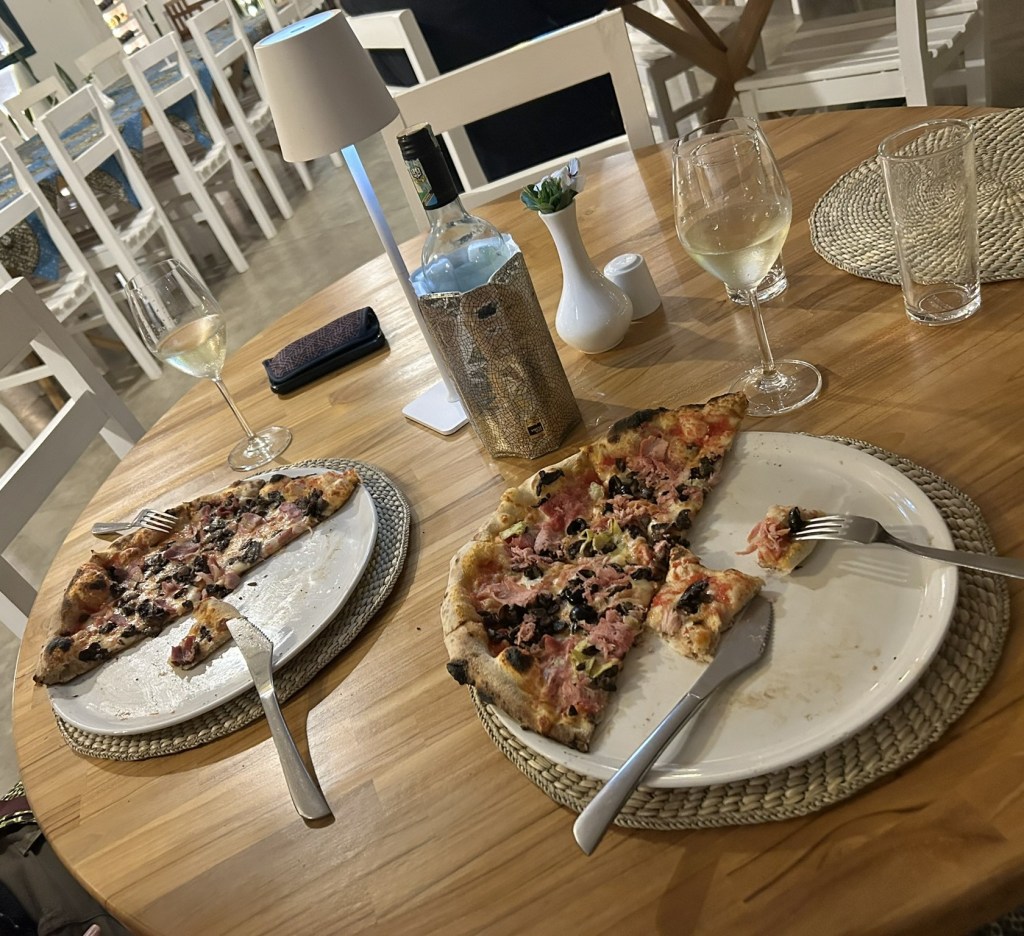 Then treated ourselves to pizza, curry and a bottle of wine at the restaurant for dinner