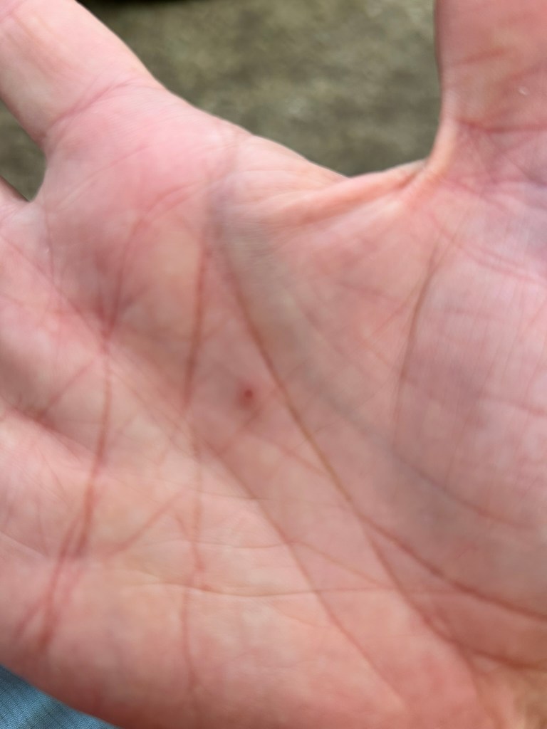 Whilst James was doing all that I was busy getting on the wrong side of something that I never saw. Whatever it was, it stung my hand before I could see it and the sting was incredibly painful. James came over to see what I had done and thought it might have been a splinter. But when he squeezed it to see whether anything would come out a burning pain overwhelmed me and I started running around the campsite shrieking for someone to cut my hand off! The staff looked at it later on and decided it was probably a wasp of some sort but it took about two weeks to settle down