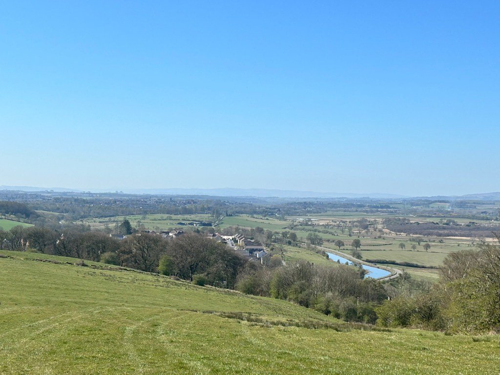 We parked in an industrial estate at the start of the trail and hiked up a far shorter but much steeper path that gave us fabulous views over the Scottish countryside