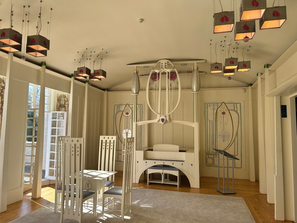 So, quite unlike us, we left the gallery unfinished and sped off to the nearby ‘House for an Art Lover’, designed by Charles Rennie Mackintosh and now an arts centre and café.