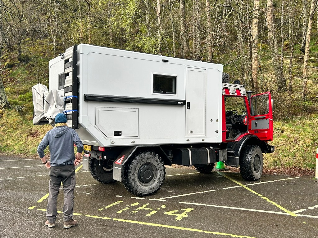 As we returned to the Mog a young man called out to us in the car park ‘what is that?’ We smiled out of the window and explained it was a UniMog. He asked what it was used for and we told him it was an expedition truck about to go around the world. His jaw dropped to the floor, he shook his head and said we’d made his day!