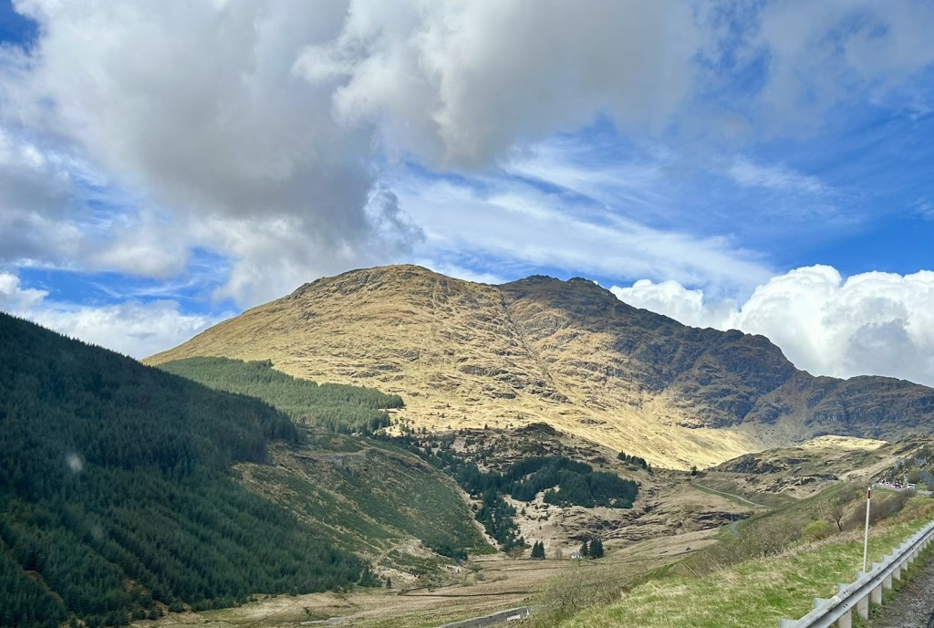 From there we took another breath-takingly beautiful drive almost all the way to Bracklinn Falls with the mountains dominating the skyline as we went