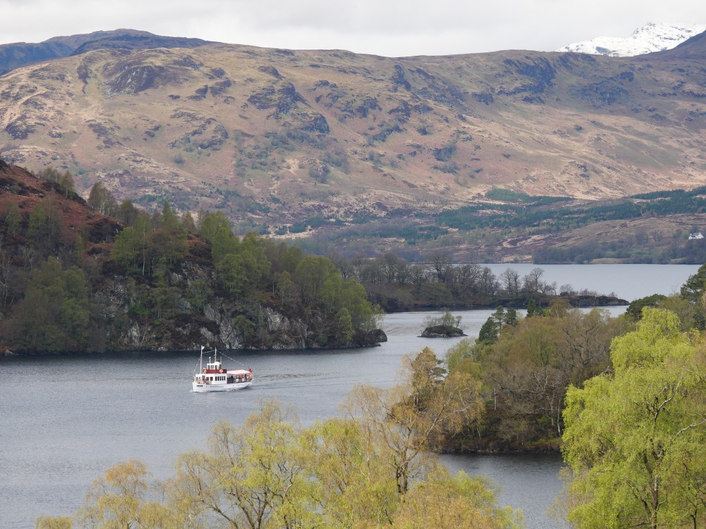 We continued on to Loch Katrine where the famous steam boat the Sir Walter Scott takes visitors out on half-day trips. We missed its morning sailing but managed to get on a smaller, sister ship that did a one hour trip that was much more to our liking