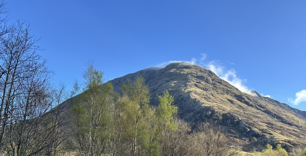 It was a shame. Apparently Ben Nevis is hidden in clouds for 350 days of the year and the 15 days when it comes out are mainly in April – which is where we were. That morning, whilst we had been doing our unplanned hike around Cow Hill, the skies had been cloudless. By early afternoon when we arrived at the viewpoint the clouds had rolled in and it was chilly and starting to rain. But all in all we didn’t do too badly.