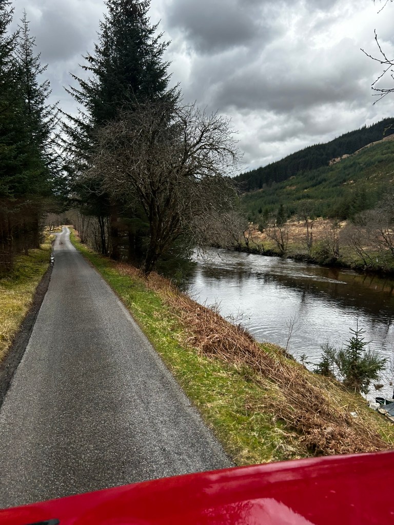 We then started back for Oban via Glen Orchy which had been recommended as ‘the pretty route’. As we turned onto the road we wondered whether we had made a mistake. It was a narrow single-track trail with passing places and the Mog was a little bit too large for it – at some points our wheels were over the edge of the tarmac.