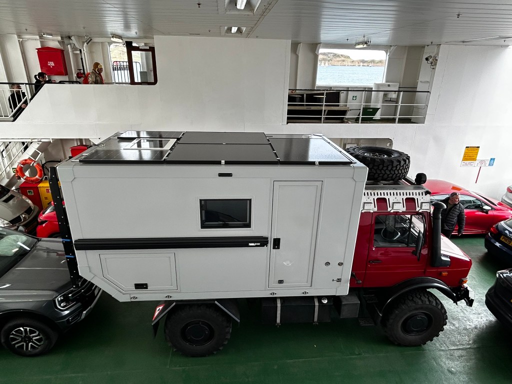 As the guy waved us onto the ferry I asked him why he had wanted to weight us – he said he was just fascinated by the truck and was curious!!