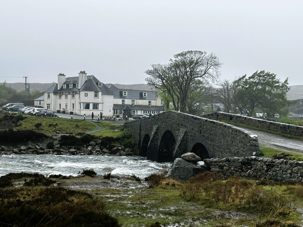 The next morning was no better. I waited until 8:45am before trying to do my training but still got absolutely soaked. We drove to the Sligachan Old Bridge. We were sure that the views could have been lovely