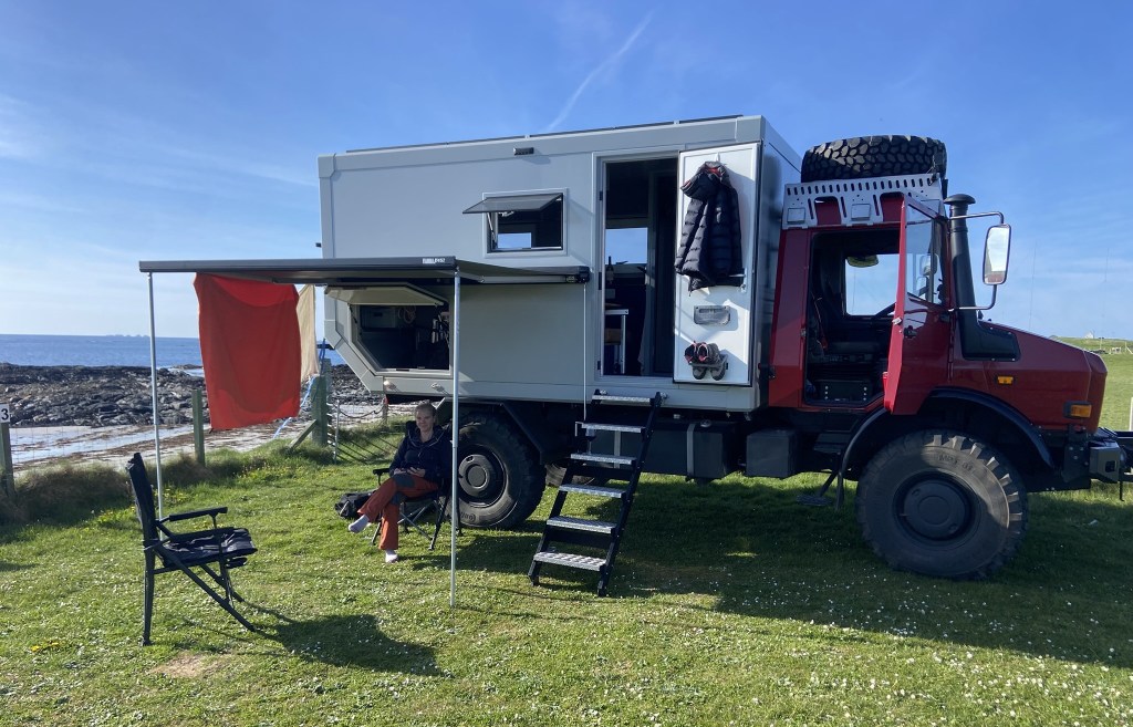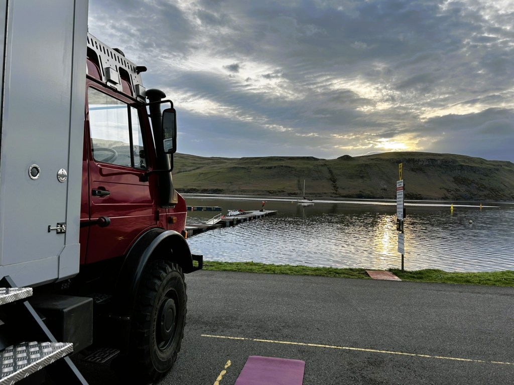 I got chatting to a woman travelling on her own and then the couple on their bikes arrived and we started talking to them as well. They asked for a tour around the Mog so we invited them in after we’d finished dinner and by the time they had returned the favour and we had talked about everything from motorhomes to full-time travelling to family and anything else we could think of, it was late into the evening.