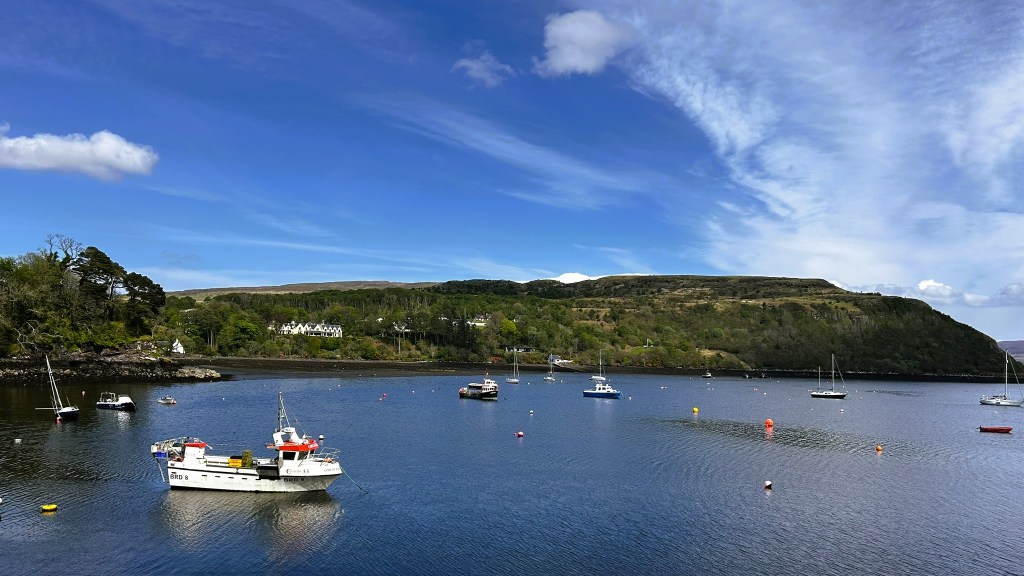 Once in Portree we parked up in the town centre car park and made a point of chatting to the parking attendant. We had been forewarned that the people of Skye get a little fed-up with tourists in motorhomes parking wherever they like and it is all too easy to accidentally find yourself with a big parking fine in a council-run car park for the slightest infringement. The attendant started off a little frosty but soon warmed to us and gave us sound advice on the various rules. Once he had confirmed that we were parked properly we thanked him, paid for our ticket and wandered into town. It was his advice to buy two tickets if we couldn’t fit all our wheels into one bay that saved us a couple of weeks later in a very tight car park in Inverness, every day is a learning day!