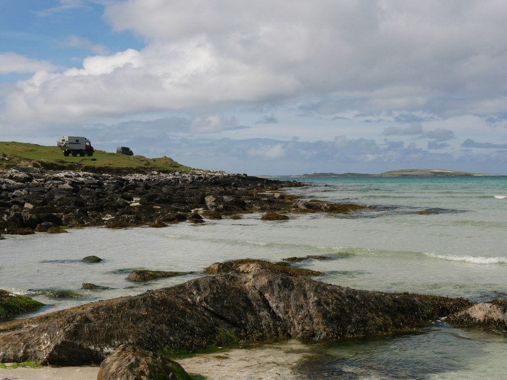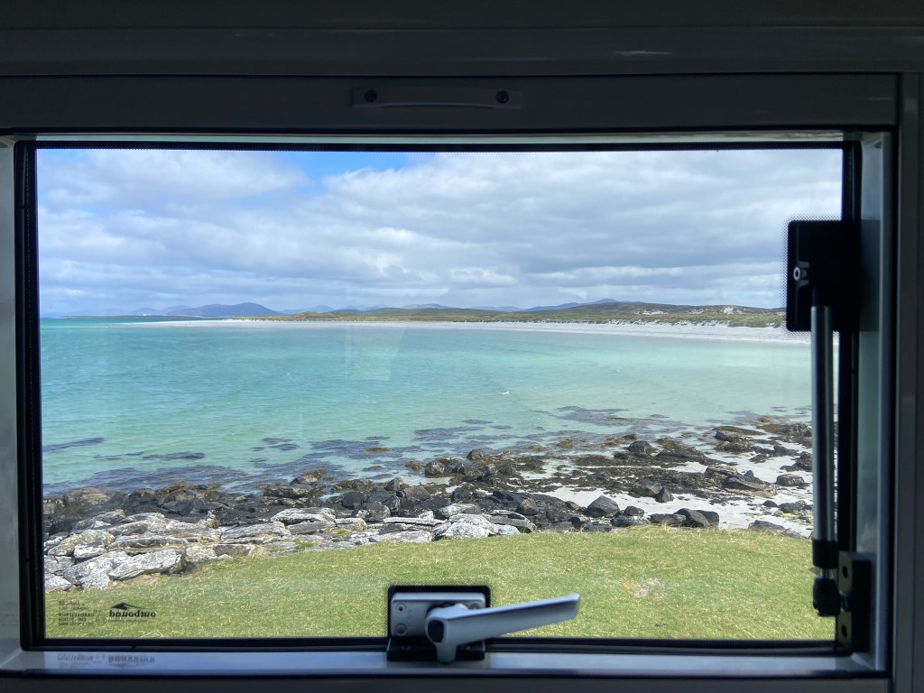 But we were clearly not welcome so we dragged ourselves back into the cab and drove nearly 20 miles back to Baleshare and the windswept beach where the public car park fronted right onto the shore with lovely views. It was a good decision, we had a much needed, peaceful and undisturbed nights sleep