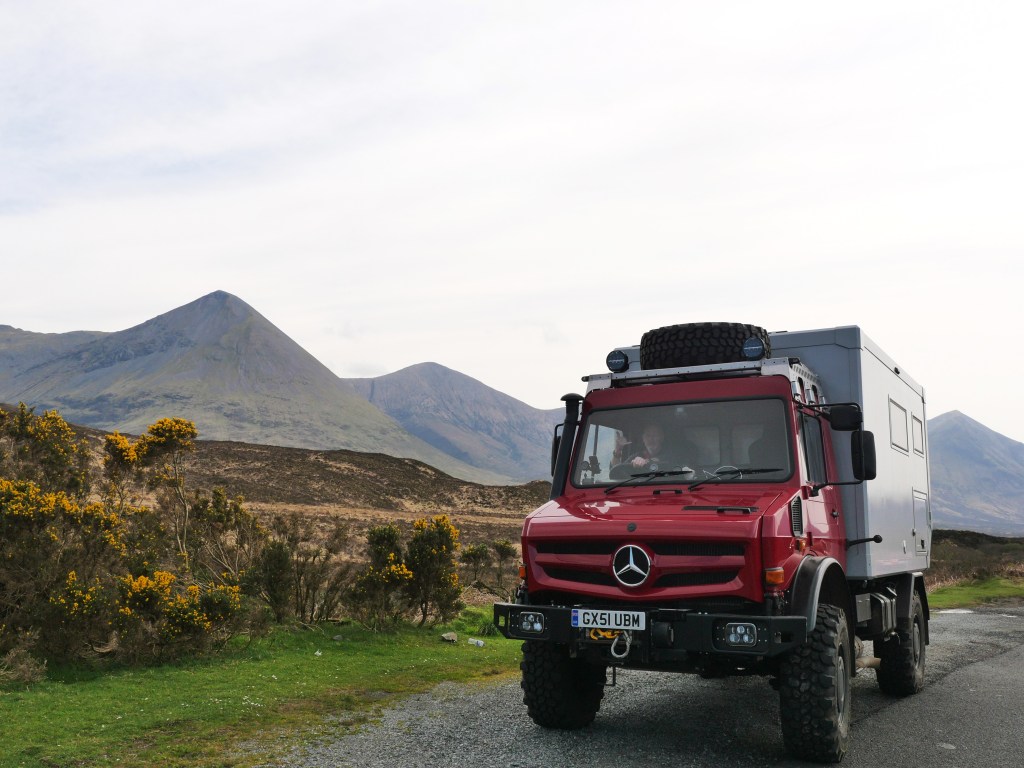 We hauled anchor from our quiet park-up spot in Plockton and headed straight for the Skye bridge. Not having to worry about ferries to get to Skye was helpful but we definitely needed to book one to get any further. So far we had failed to find a ferry anywhere to the Outer Hebrides with a slot available for the Mog but ploughed on in blissful optimism.