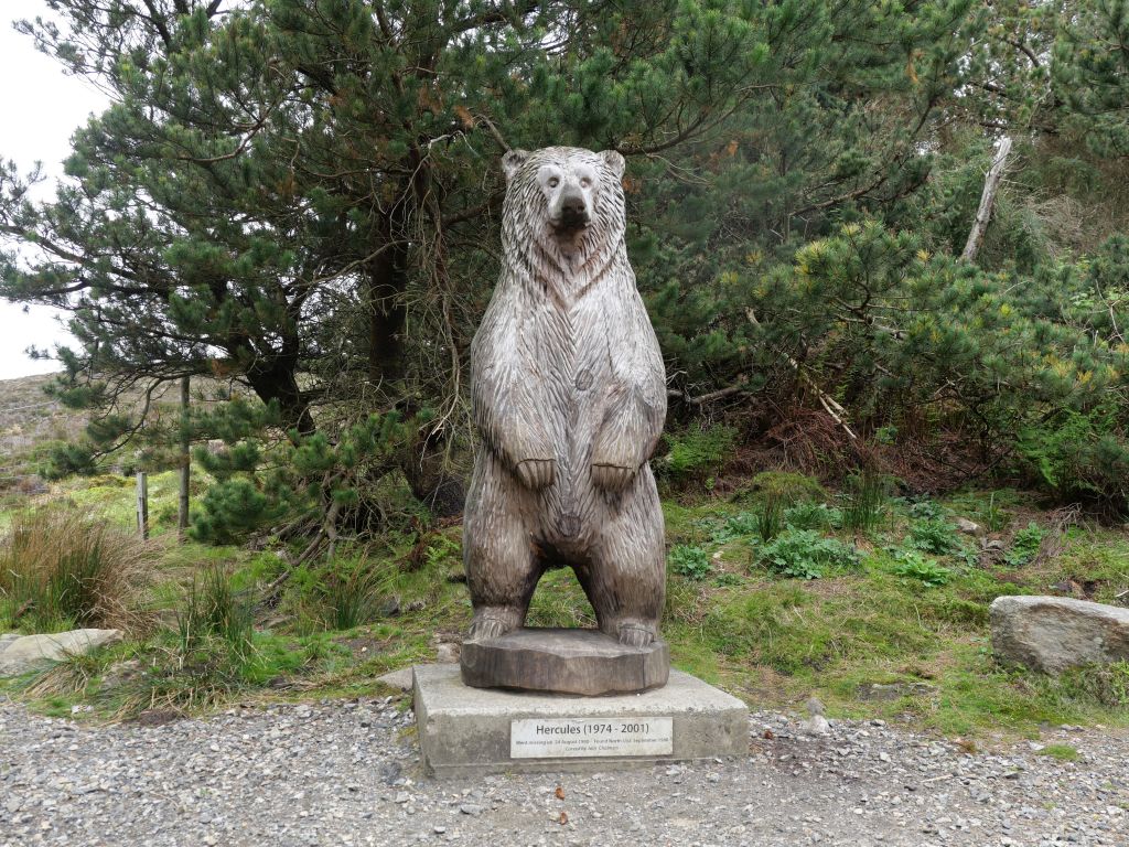 So we carried on to see the statue of Hercules the Bear in the Langass Woodland. Hercules was a grizzly bear and an actor in the 1980s who escaped during filming of an Andrex advert in Benbecula and was found 3 weeks later 20 miles away right here in these woods