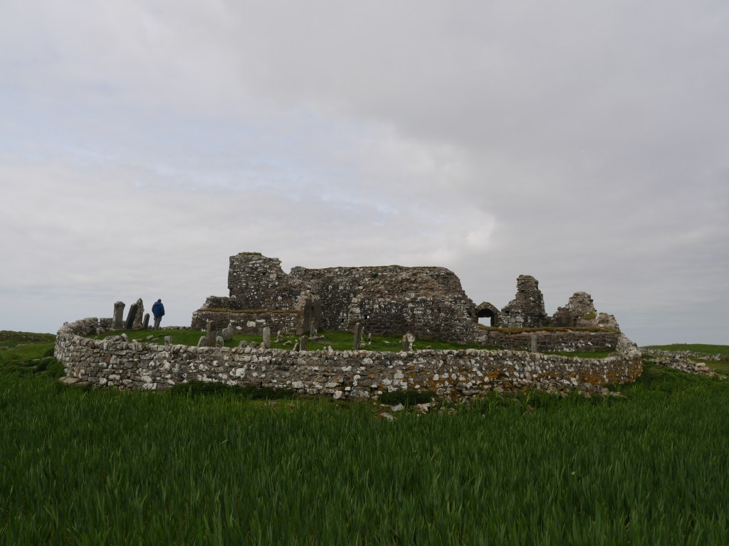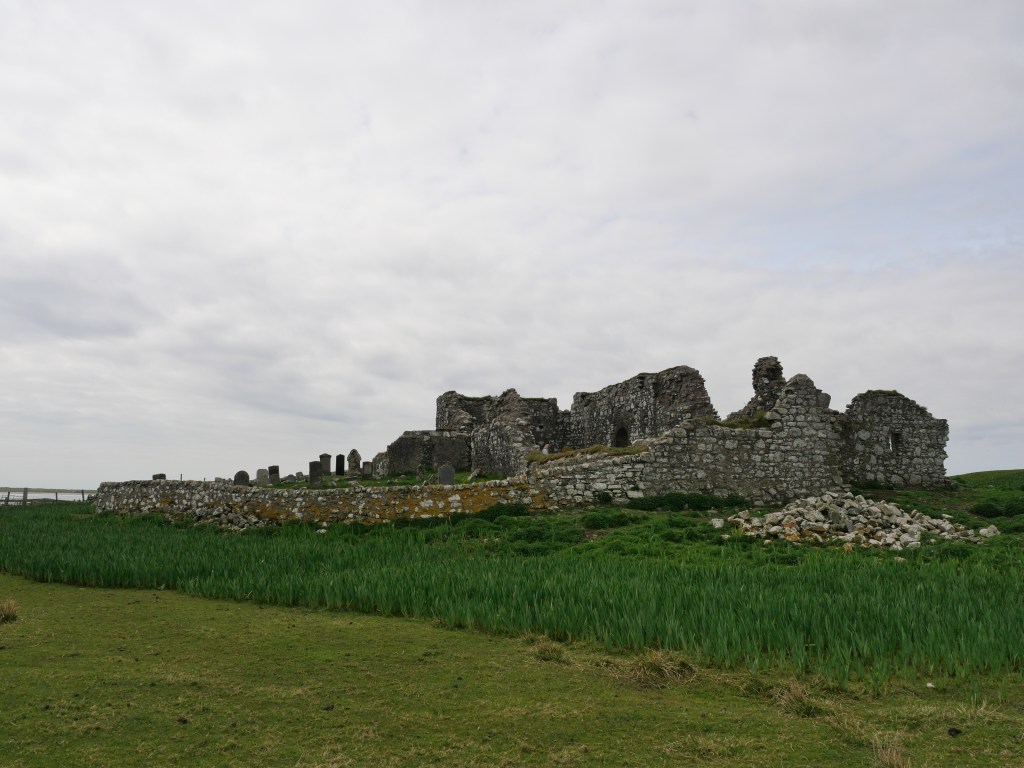 We pressed on and crossed a narrow causeway onto the tiny island of Baleshare where we pulled up at the beach and looked out over a wild and windswept coastline. There wasn’t much to do there though so we returned to North Uist and the Trinity Temple – the ruins of an important church built around 1200