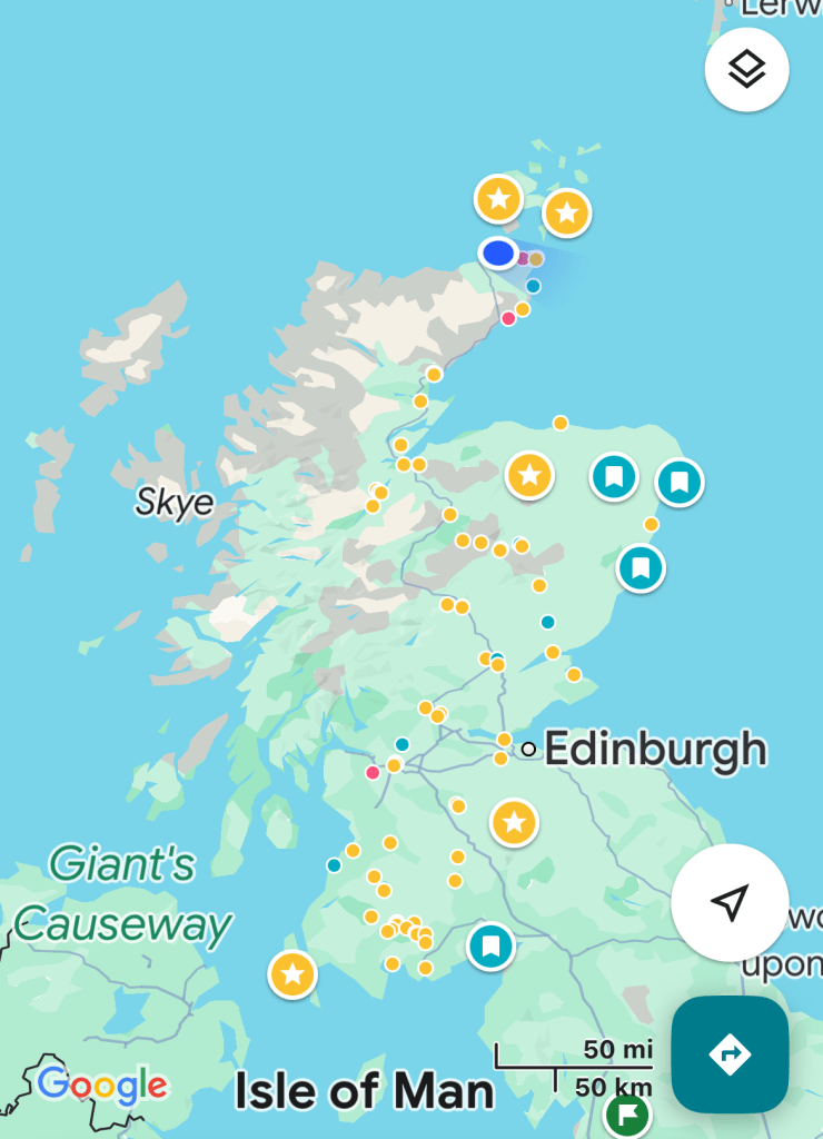 This point on the map was another milestone – being the most north-easterly point on the mainland it is also the furthest it is possible to get from Landsend