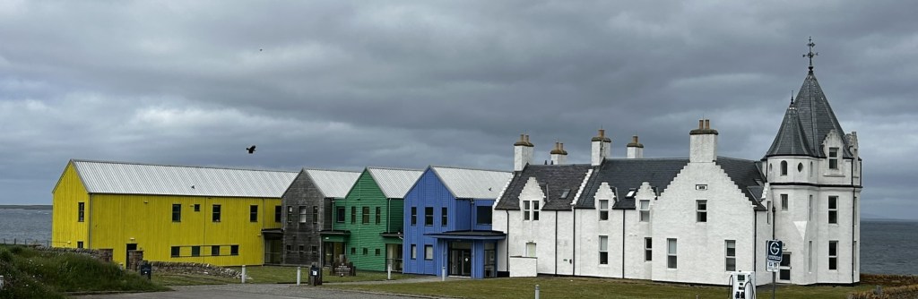 We fuelled ourselves with a surprisingly good lunch of cheese toasties and soup in the castle café then headed off to John O’ Groats itself. It is so famous we couldn’t miss it out but we weren’t sure what to expect. In 2005 the Lonely Planet called it a ‘seedy tourist trap’ and in 2010 it won an award for being ‘Scotland’s most dismal town’! Apparently it had a face lift in 2013 but if this is what it was like after the improvements I wouldn’t like to think what it was like before!