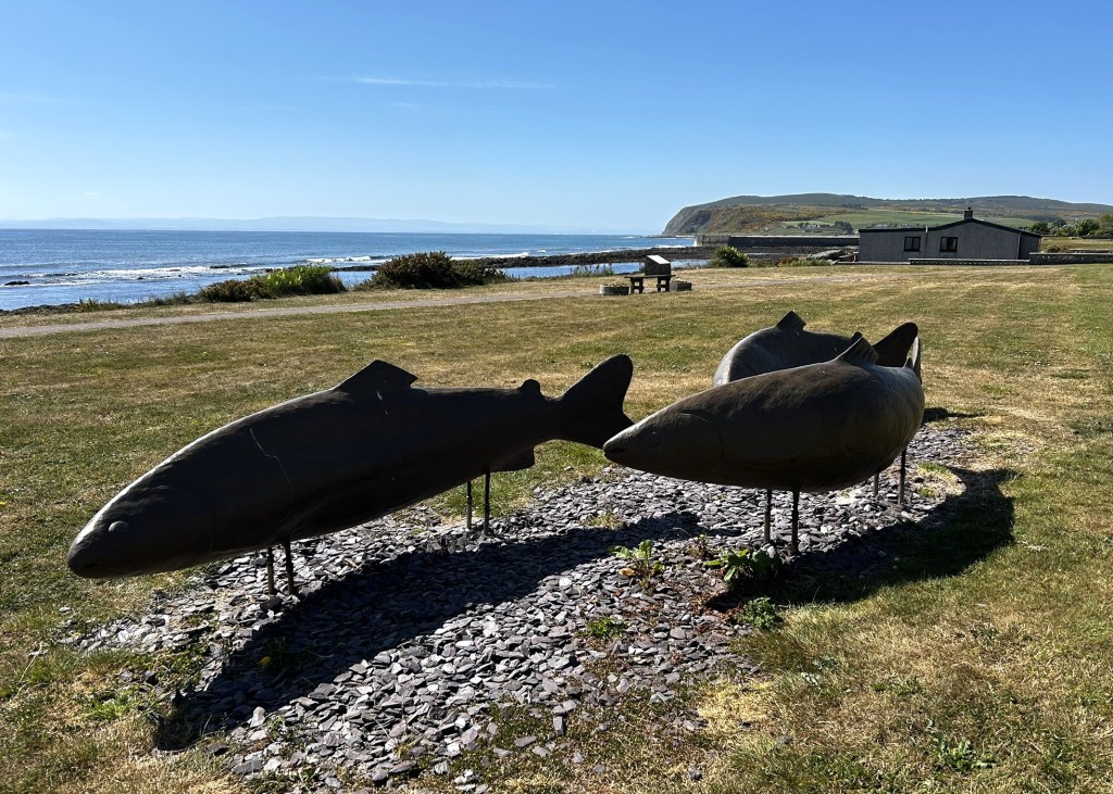 We couldn’t park anywhere close as motorhomes were not allowed in the tiny car park and the nearest place to pull in was nearly 1.5 miles up the road. We could have a long walk for nothing as dolphins are not known for their reliability! But it was a beautiful day and a lovely stroll down the lane through a golf course so we donned our sun hats and set off
