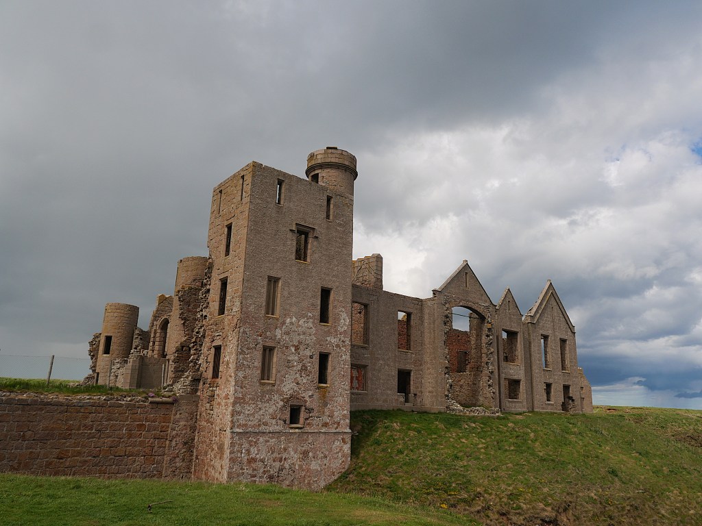 The castle itself is a ruin. The core was built around 1600, expanded and altered in 1664 then extended again in 1836. It was sold in 1916 due to death taxes but the new owner allowed it to fall into disrepair and by 1925 the roof had been removed and the dressed stone removed for re-use somewhere else