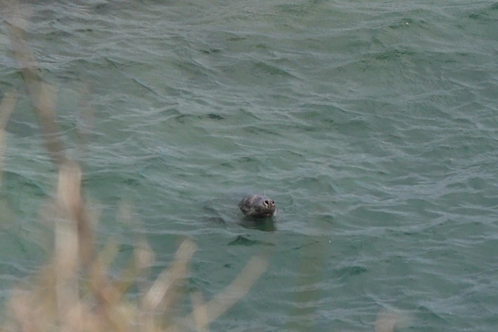 I was very excited, however, to be looking through my photos later in the day and find that I had taken an accidental shot of nothing in particular only to zoom in on a black spot in the sea and find I had caught a seal swimming!