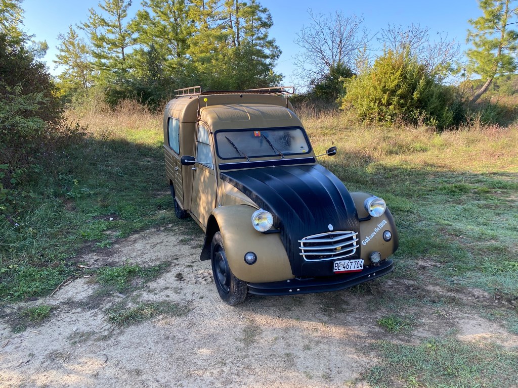 The other couple were Swiss, travelling in a Citroen 2CV. We got chatting to them for ages and James helped them fix the springs on their car with the use of our jack