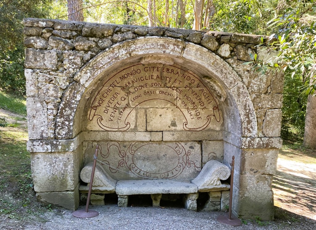 I suspect that many of the more bizarre stories written about this place are made up or at least wildly exaggerated. There was nothing in the information provided by the park itself about grief-stricken madmen but rather some fascinating descriptions of the artists and architects who worked with the founder, Vicino Orsini, to create his vision of ‘a labyrinth of symbols, where Ladies and Knights might look for their wishes to be fulfilled and wander till they get lost’.
