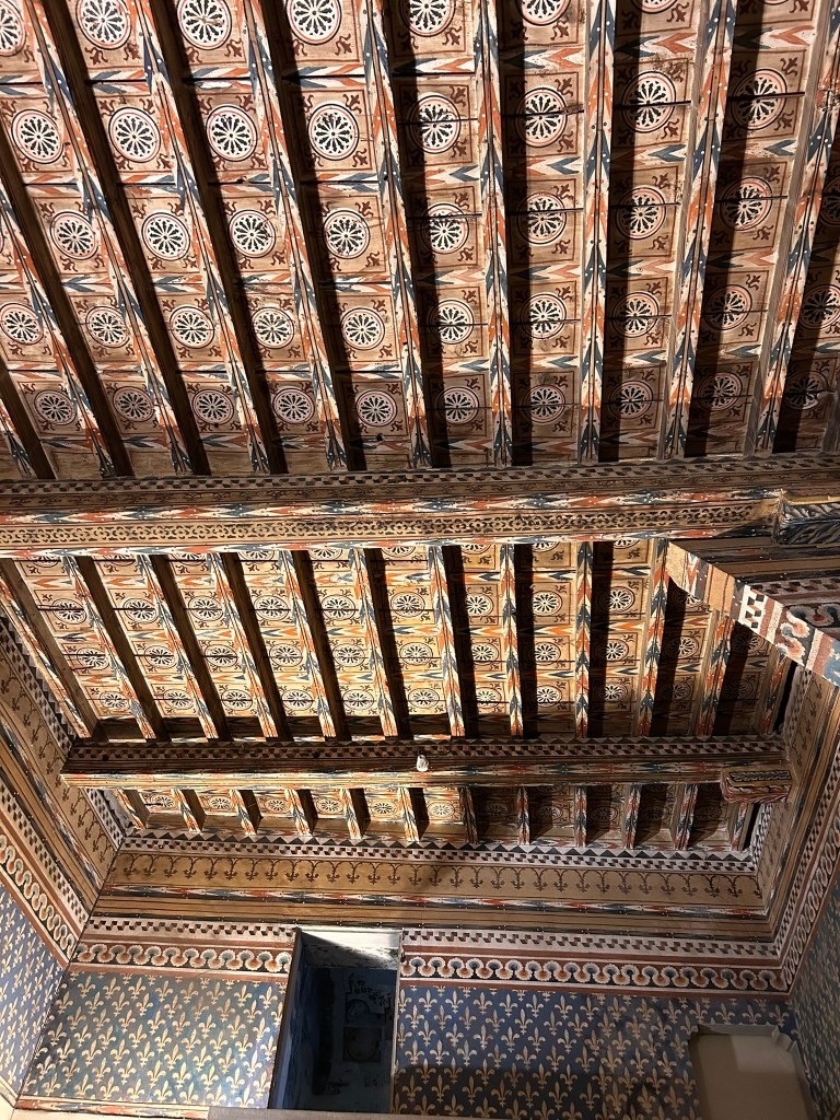 And a room with a decorated ceiling which is one of the oldest in Italy
