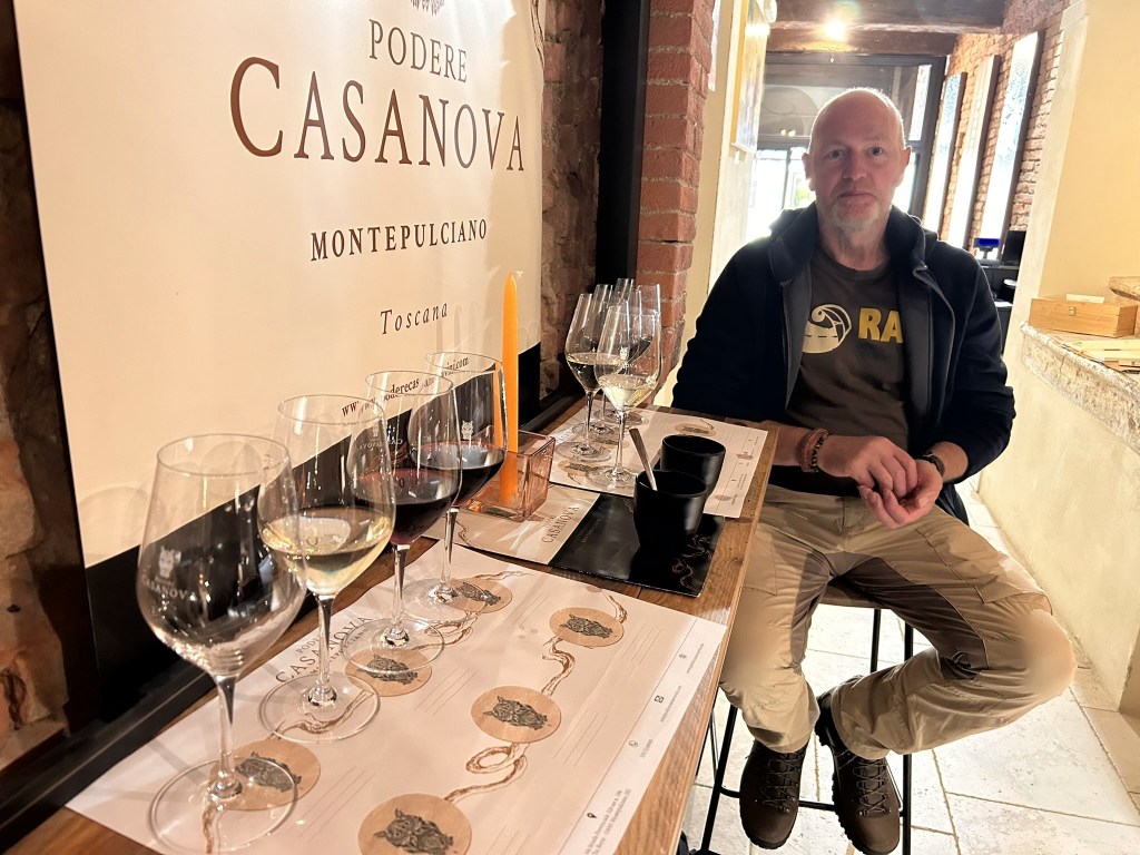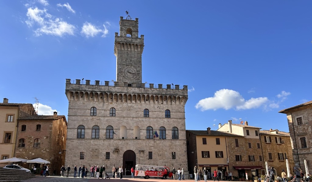 We said our goodbyes to the beautiful park-up spot, the Swiss couple with their Citroen and – of course – the cute cats, and drove to another pretty town. This one was Montepulciano, renowned for its Renaissance buildings and production of Vino Nobile di Montepulciano.
