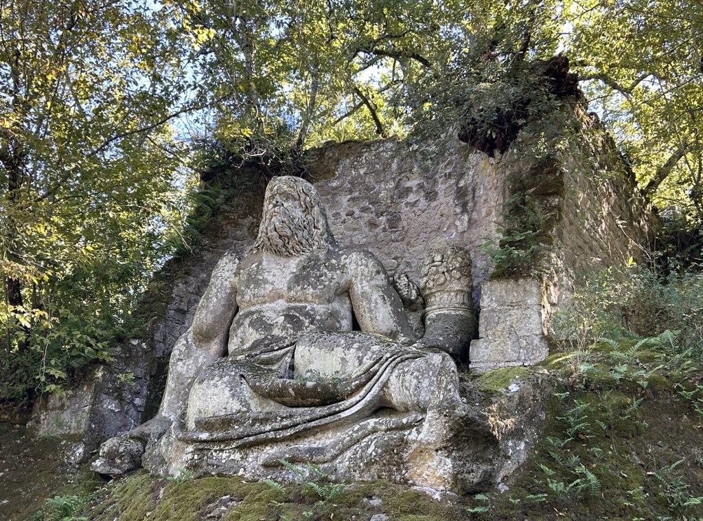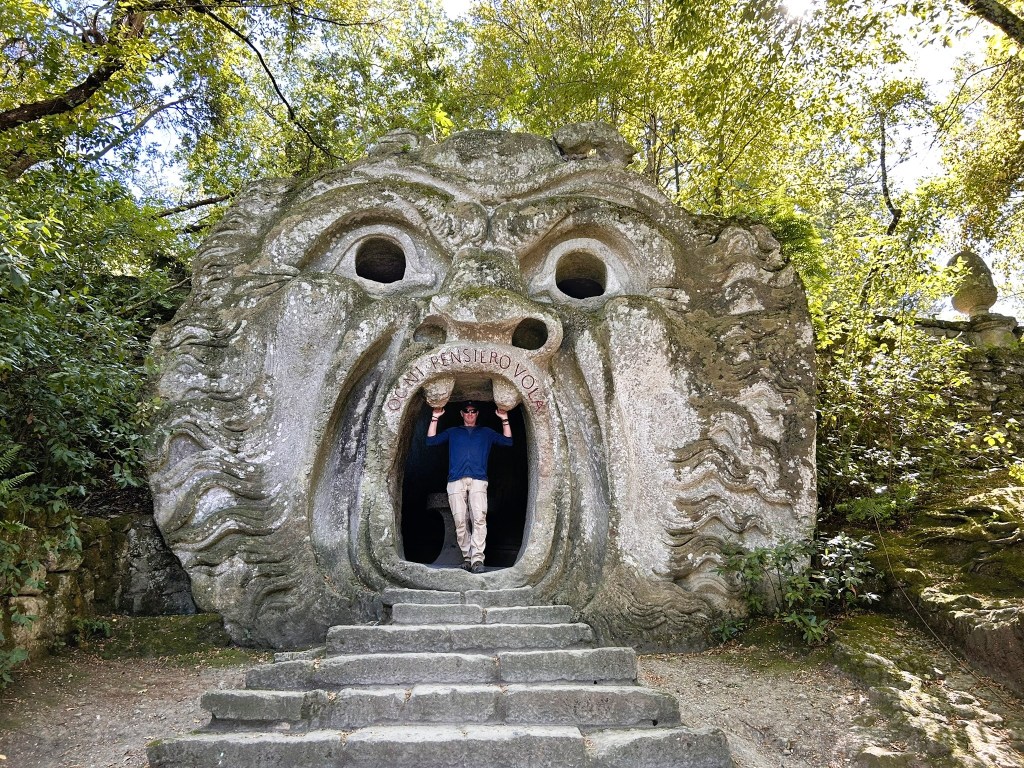 We were about an hour away from a place that we had both been intrigued to see. It was called Sacro Bosco which translates as ‘Sacred Grove’ but is also known as the ‘Park of Monsters’. I had read that it was the oldest sculpture park in the world and was a ‘surreal landscape dotted with grotesque sculptures’ created in the 16th century by a man driven mad by war and grief who was trying to rid himself of his demons by carving them into stone.