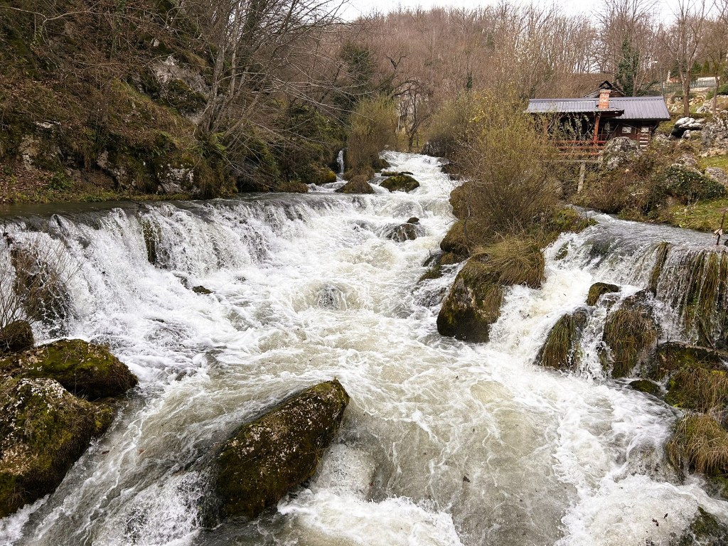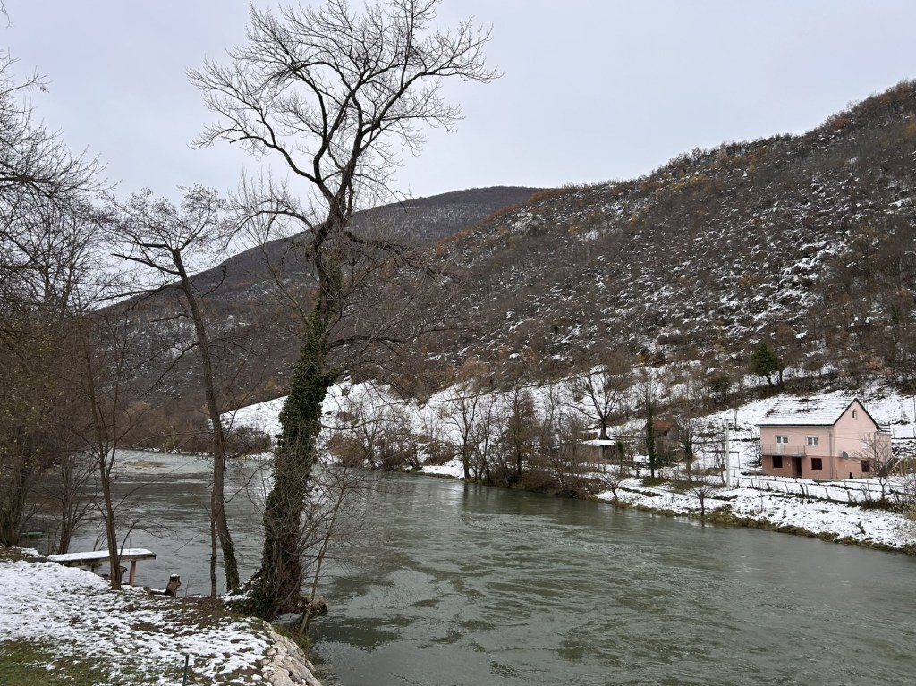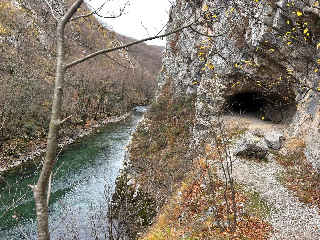 We drove back to Martin Brod and went for a bracing walk along the Una River to see another tunnel – this one dug by the Yugoslav Army