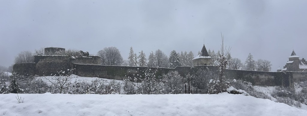 The forecast said that we should expect temperatures down to minus 7 and up to 37cm of snow which would be almost up to our knees. We anticipated having to stay put for a few days, so enroute to the castle we tried five different fuel stations to fill up with water but were out of luck at every one.