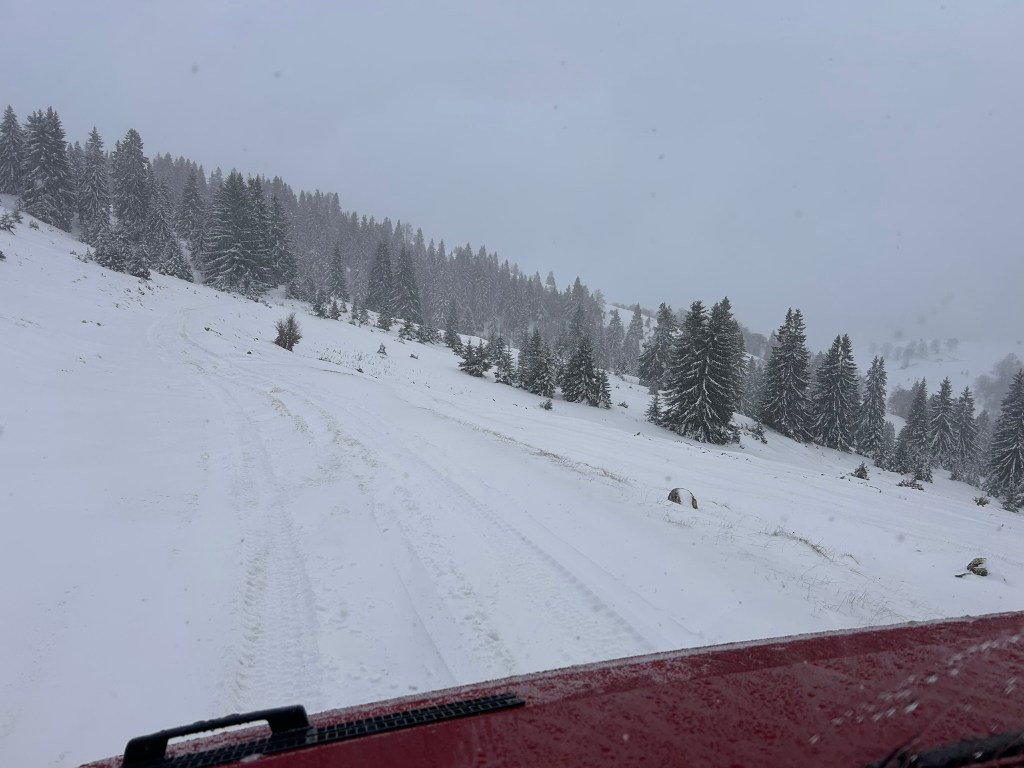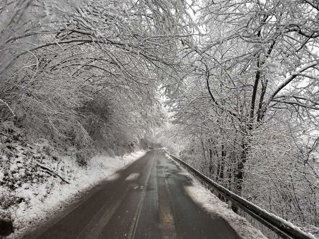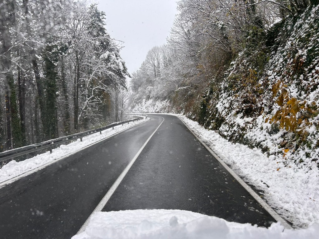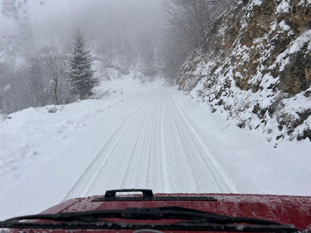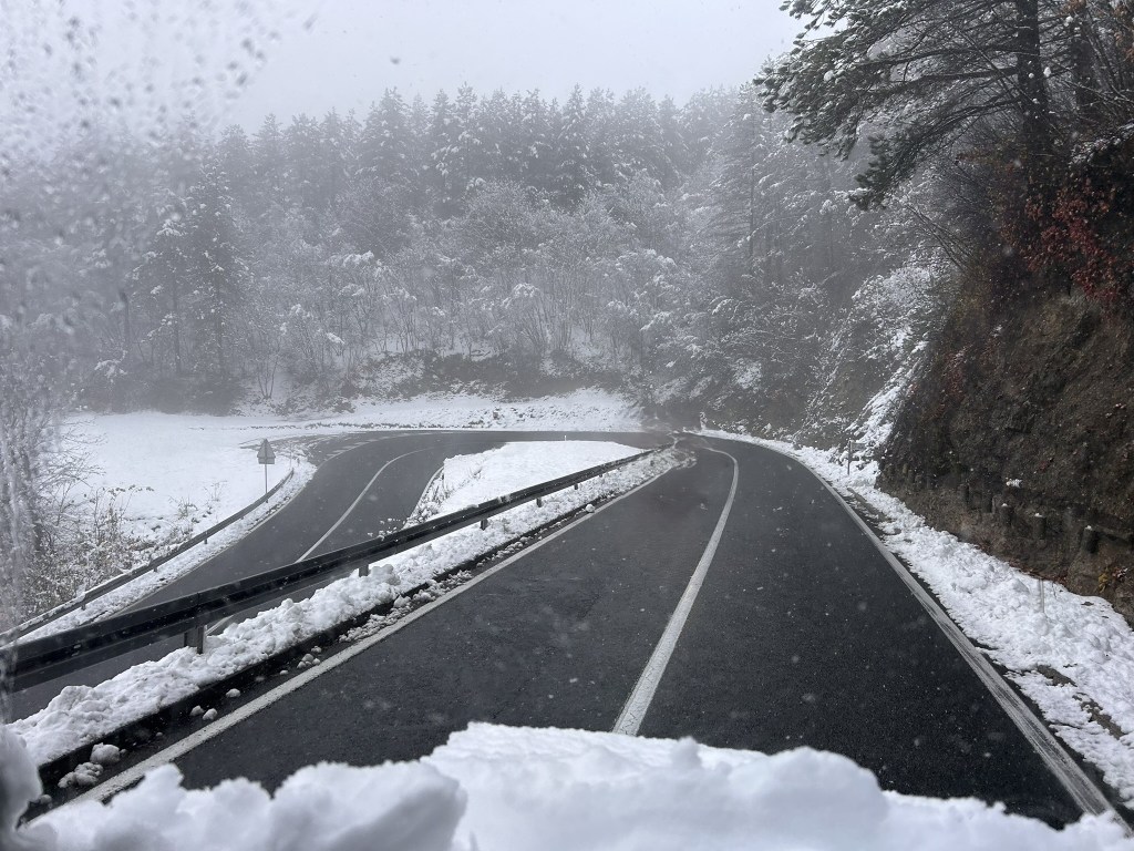 In the end we decided to chance it and see what happened. We drove from our layby at 500m altitude up to 1500m. At first the road was dusted with snow but clearly well used