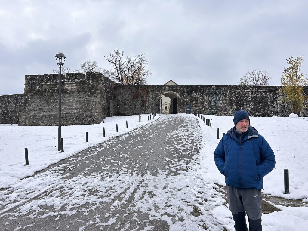 We made it to Banja Luka at around midday and found ourselves behind a gritter lorry trying desperately to keep the roads clear