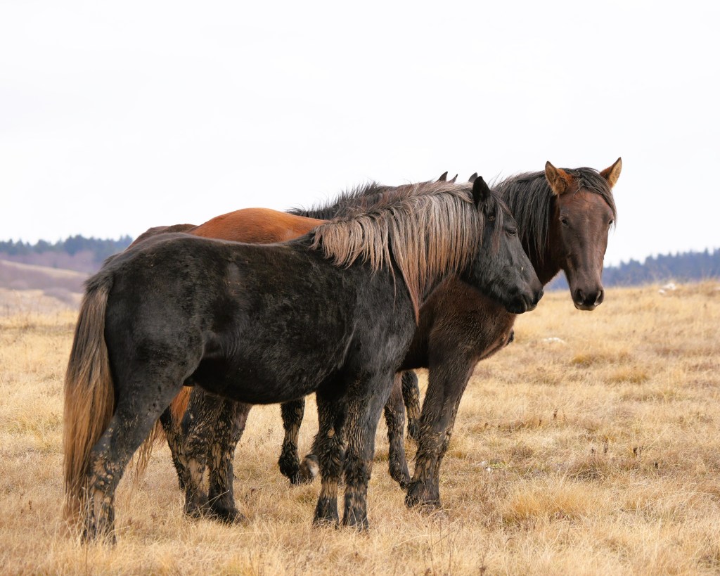 We set off across the plains in search of wild horses and less than half and hour later spotted some horse-shaped movement high up on one of the hilltops. We decided against driving up a goat track to get a closer look and five minutes later our caution paid dividends. We rounded a bend and found a small group of horses grazing just a few hundred meters away