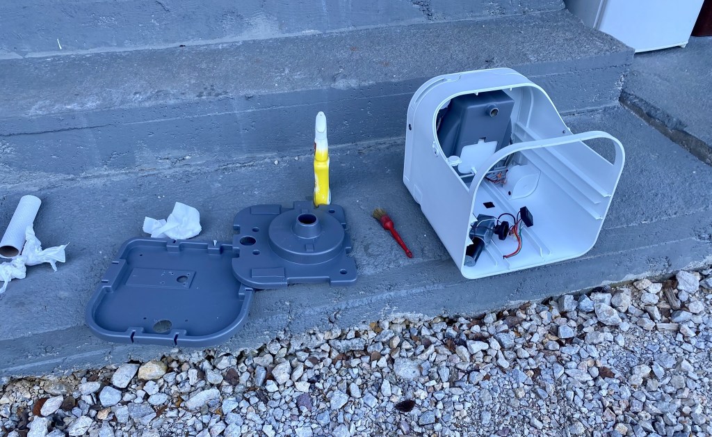 We got busy preparing BigMog for his holiday. James made some adjustments to our toilet that would help keep it cleaner in the future
