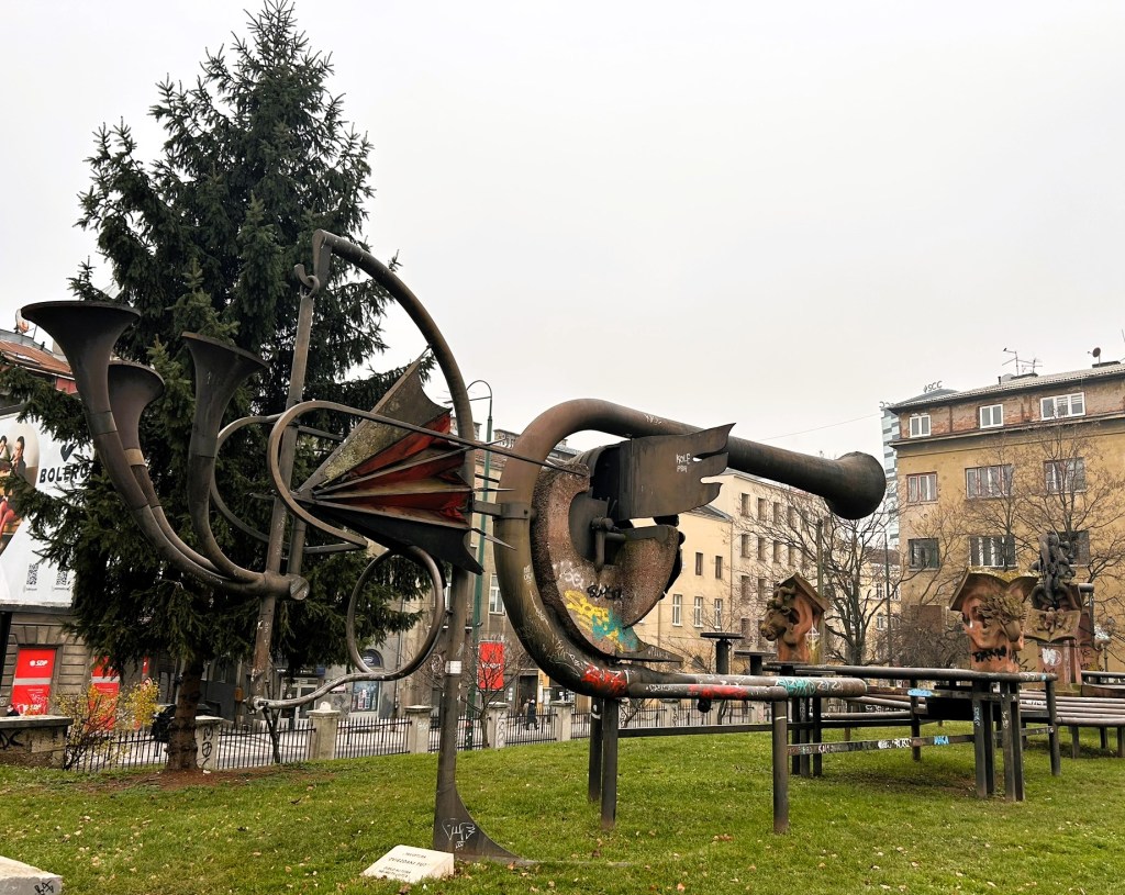 Across the road we found the History Museum of BiH. We didn’t go in but there were some very interesting exhibits outside in the gardens