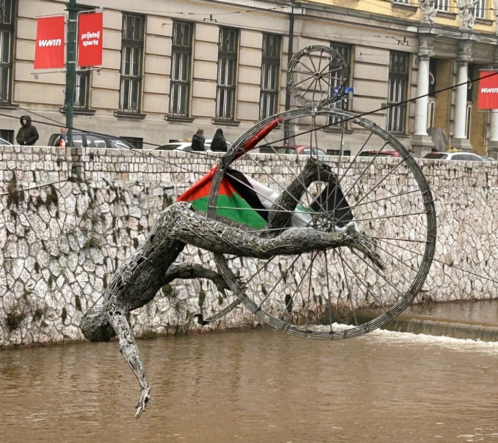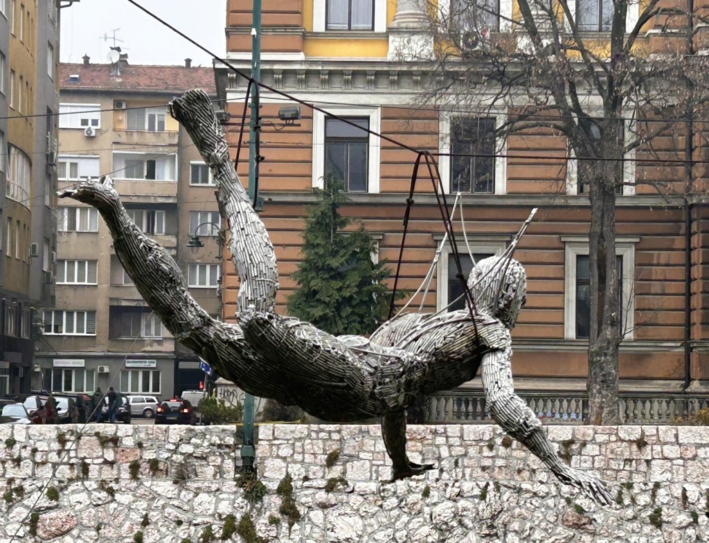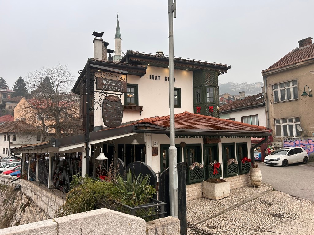 By the time we had finished it was 3:30pm and already getting dark. We walked back over the bridge and spotted the House of Spite – apparently a ‘symbol of Bosnian stubbornness, insubordination and persistence’