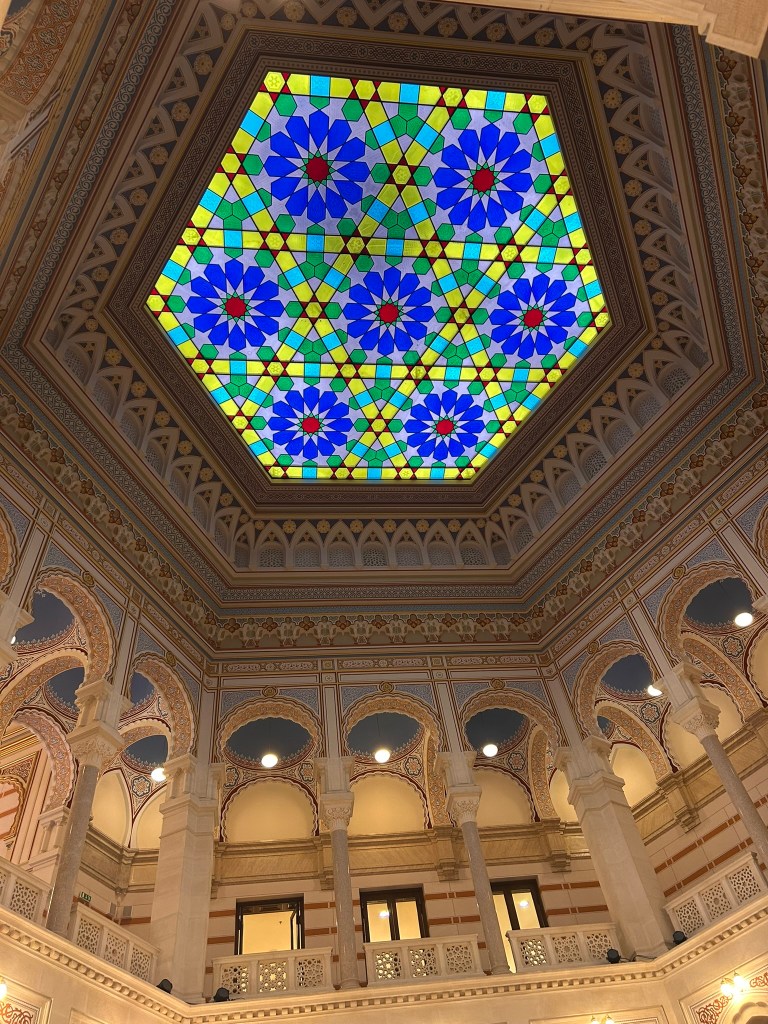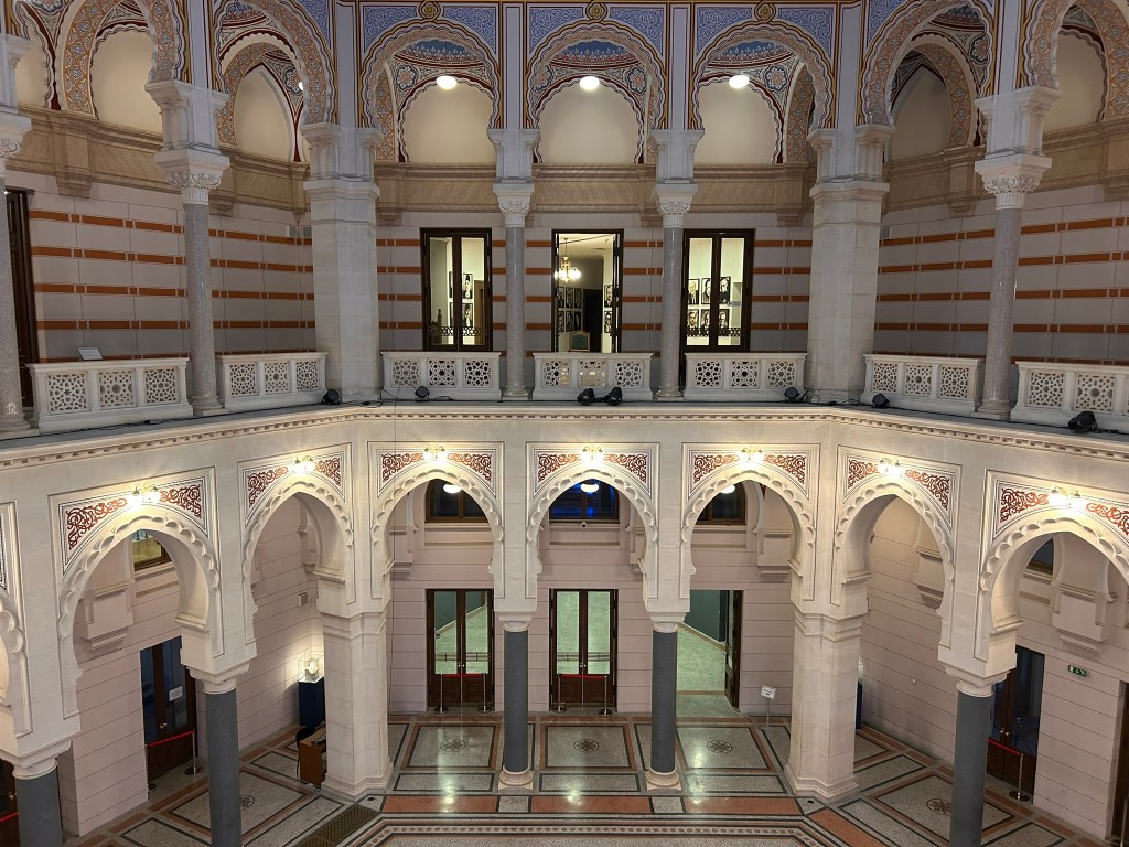 It was built in 1894 in pseudo-Moorish style to honour the Muslim background of the city. It was used as a court house and a parliamentary building and then turned into the National and University Library.