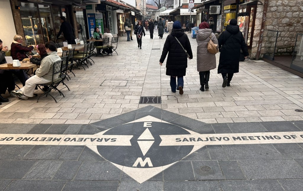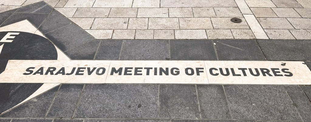 In Uganda we stood on the line of the equator, where north meets south. Here in Sarajevo we stood on the line where east meets west – the ‘meeting of cultures’
