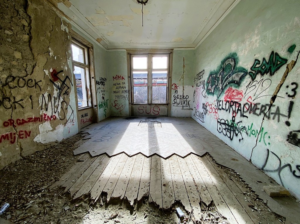 In fact it is at risk of collapsing altogether and technically you’re not allowed in but rules are rarely enforced in Serbia so we took our chances