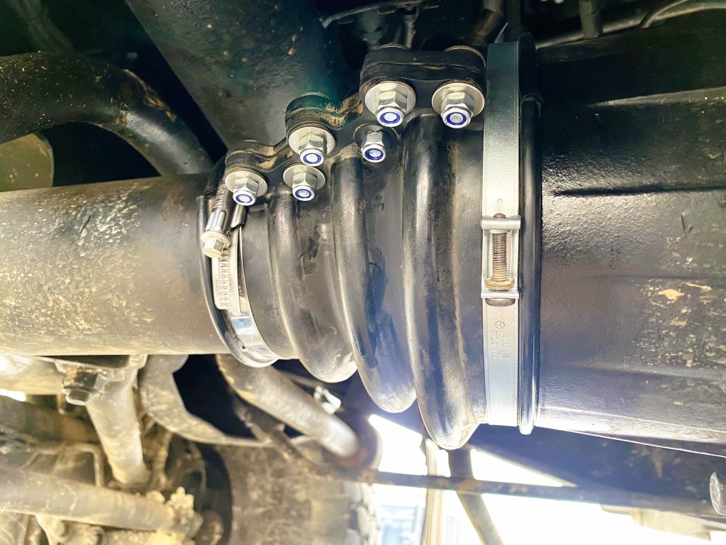 We spent the afternoon in the car park with James continuing to work through all the jobs on BigMog including replacing the torque tube gaiter