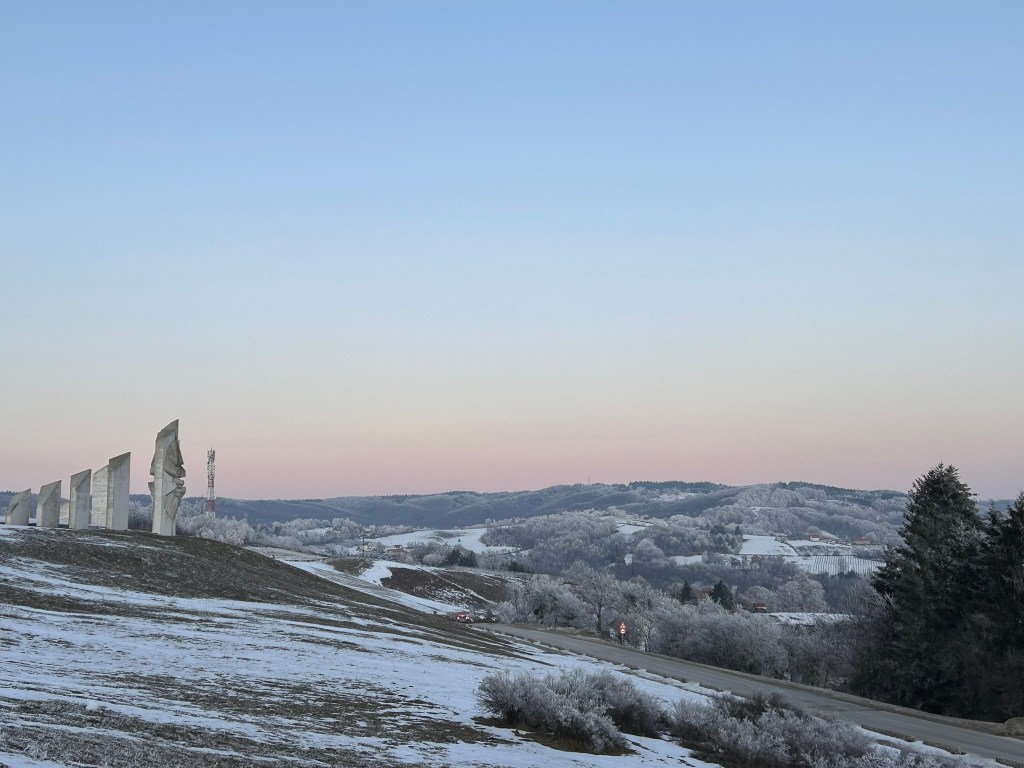 The next morning we drove up to the Fruska Gora viewpoint and did a quick walk in the snow through the trees