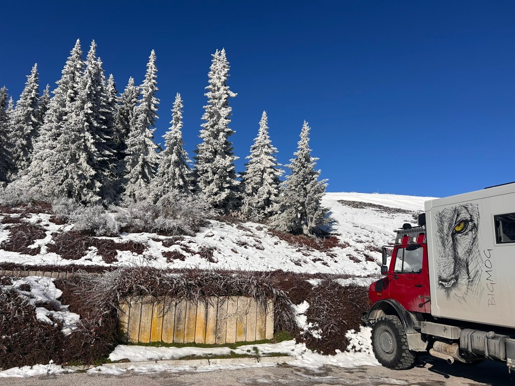 It was no good, we were sick to death of these freezing temperatures and all the problems they brought. We don’t travel to live like this, not only was the Mog struggling but so were we – we couldn’t get out and see anything because it was too cold, we couldn’t go anywhere because the roads weren’t passable. Everything was just miserable.