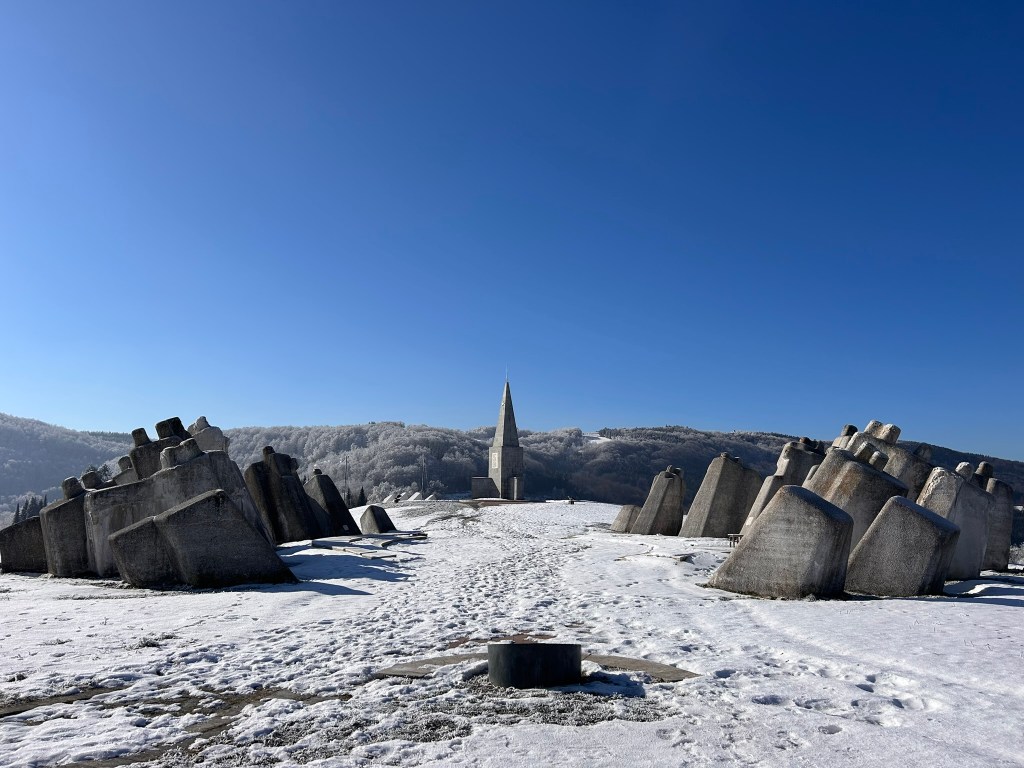 From there we drove to the Kadinjacha Memorial where we hoped to stay the night. Now obsessed with altitude, I had looked up how high it was and been told by Google that its elevation was 440m, which I thought would be fine.