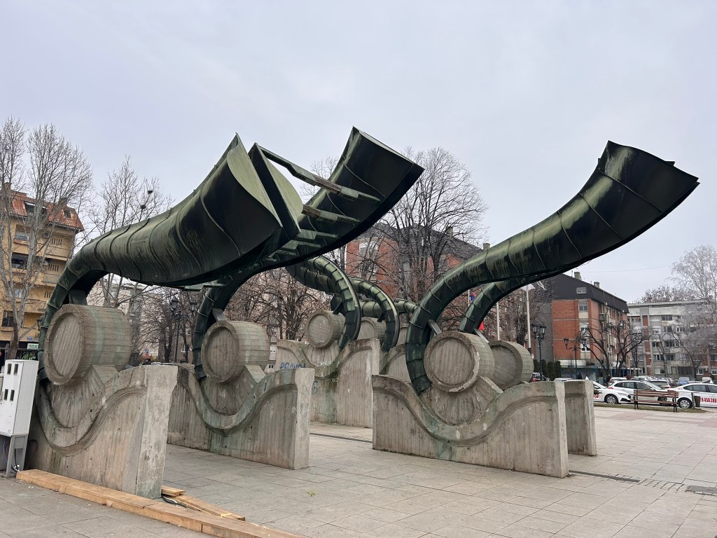 Ruma was just a stop along the way to the Fruska Gora National Park but there was a monument in the centre of town that we wanted to see – seven trumpets symbolising the seven Vojvodina People’s Liberation Brigades in their fight for freedom against Nazi Germany.